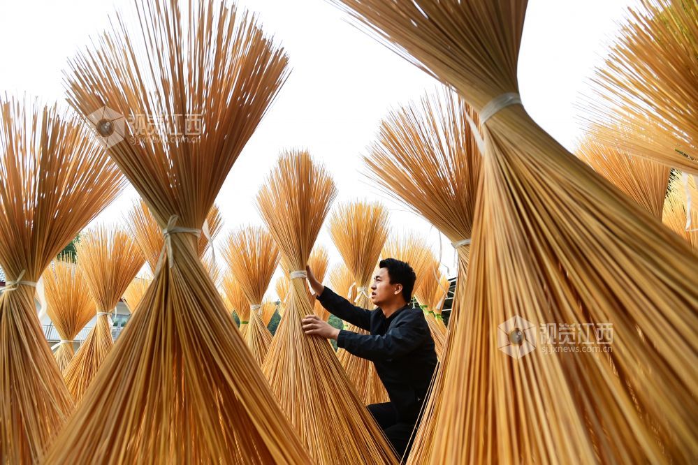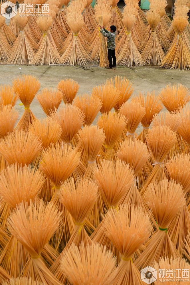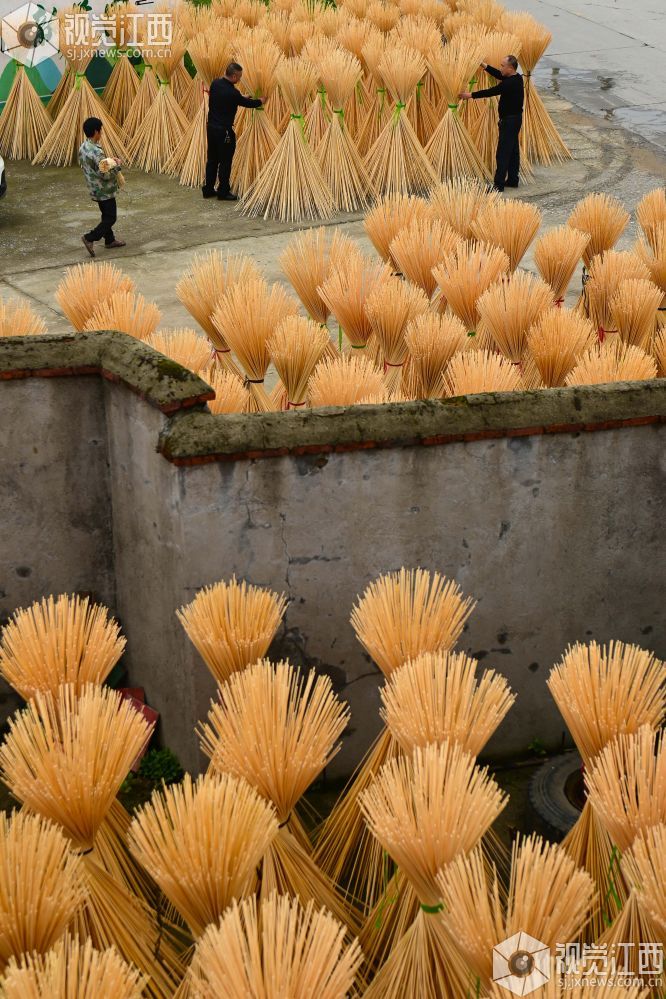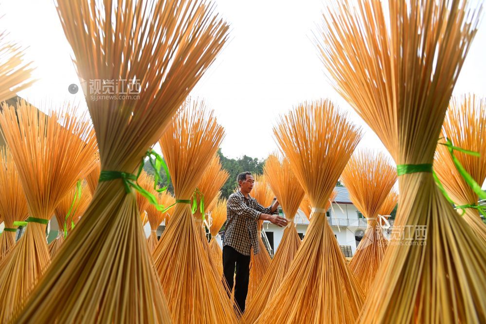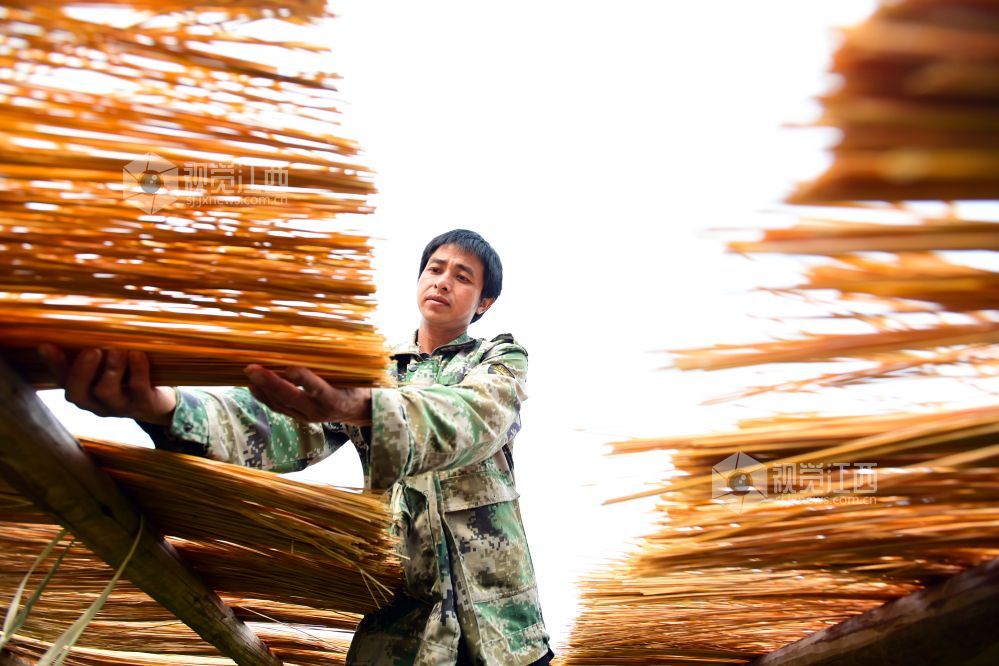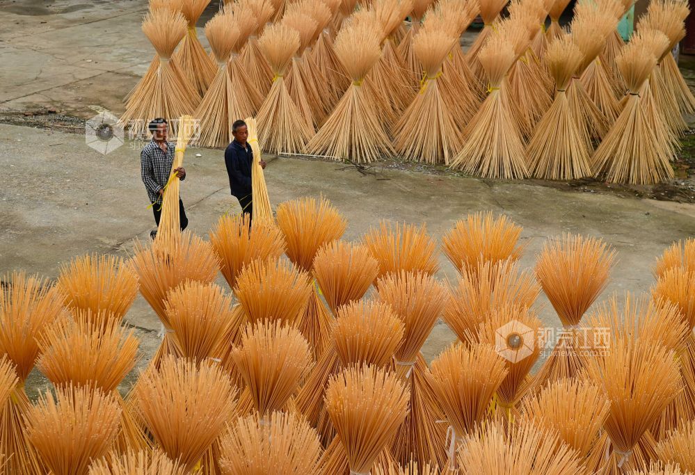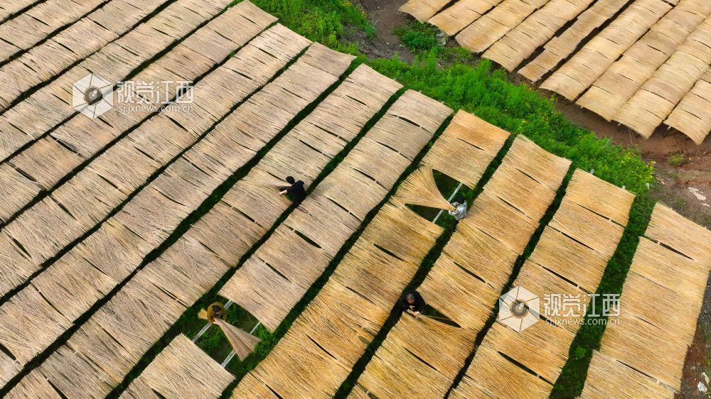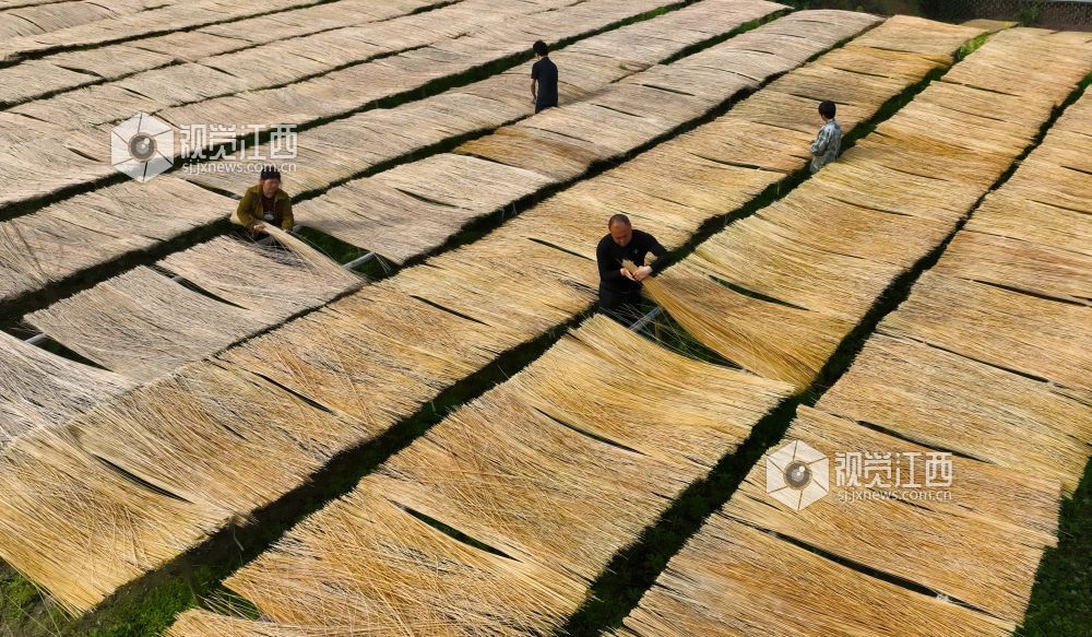 2024年4月26日,在江西省宜春市万载县赤兴乡镜山村,农民正在晾晒竹制品。近年来,江西省宜春市万载县赤兴乡利用丰富的毛竹资源优势,大力推进竹产业种植和毛竹精深加工,做“竹”文章,助推村民在家门口就业增收致富。