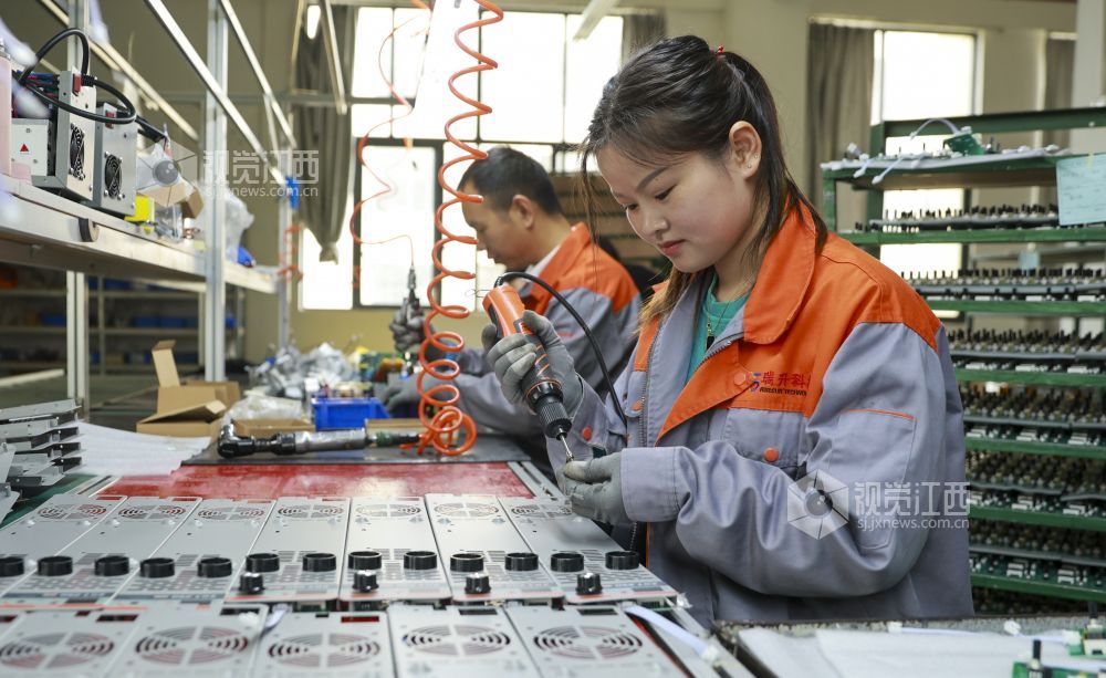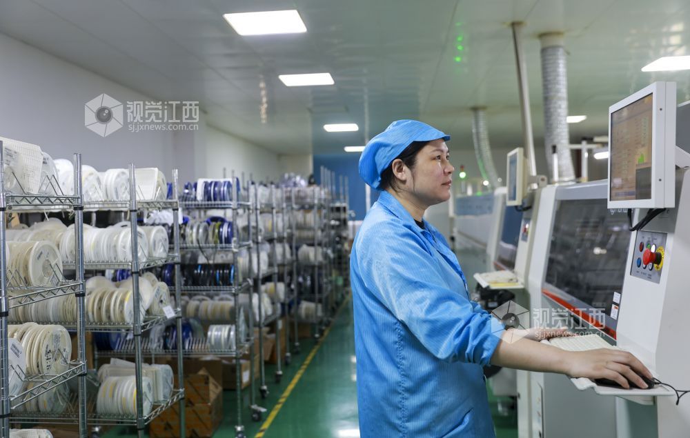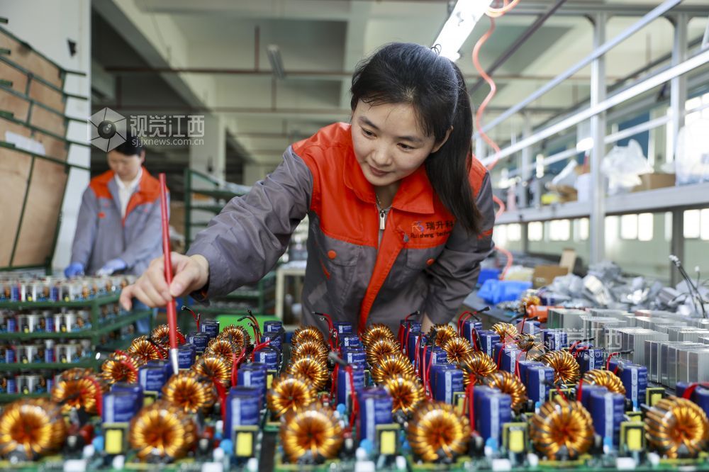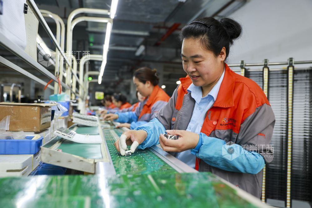 2024年4月29日,江西省瑞昌市智造小镇江西瑞升科技股份有限公司车间内一派繁忙,工人在生产线上赶制国内外订单。