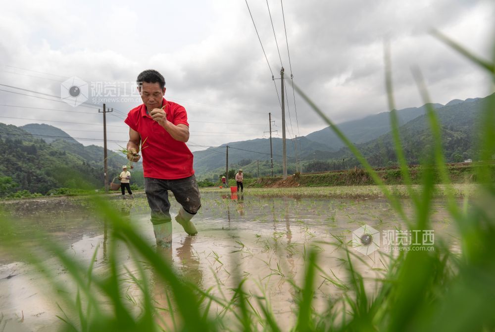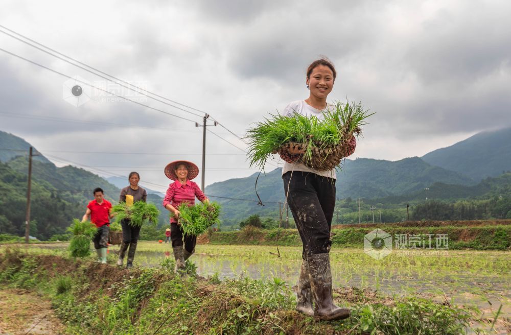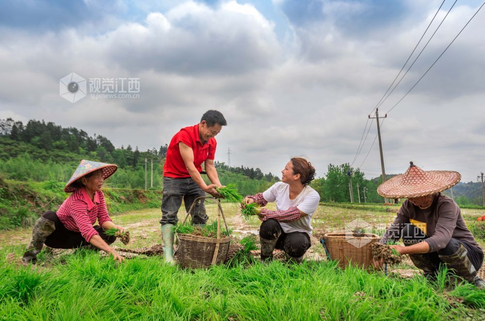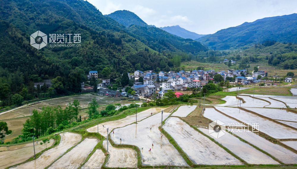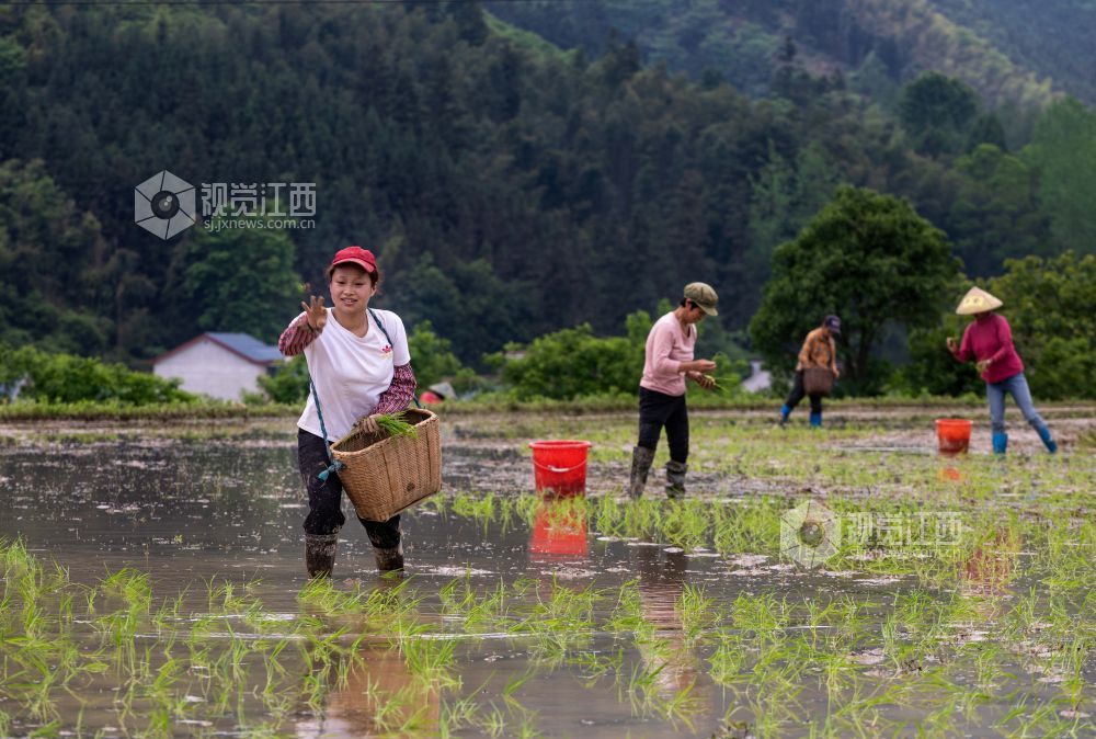 眼下正是早稻栽插时节,2024年4月29日,在江西省永新县曲白乡小枧村水稻种植基地,村民们手拿秧盘,娴熟地抛着秧苗,一抛一撒间,一株株秧苗便成行成列地立在了田里,展露出勃勃生机。放眼望去,镜面般的稻田,阡陌交会,嫩绿的秧苗随风摇曳,好一幅诗意景象。