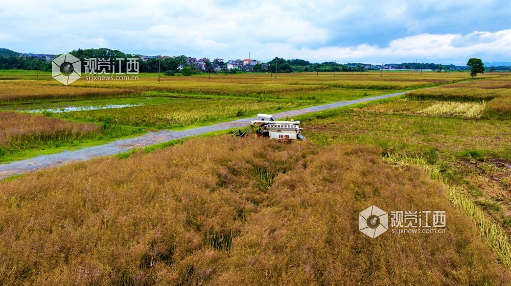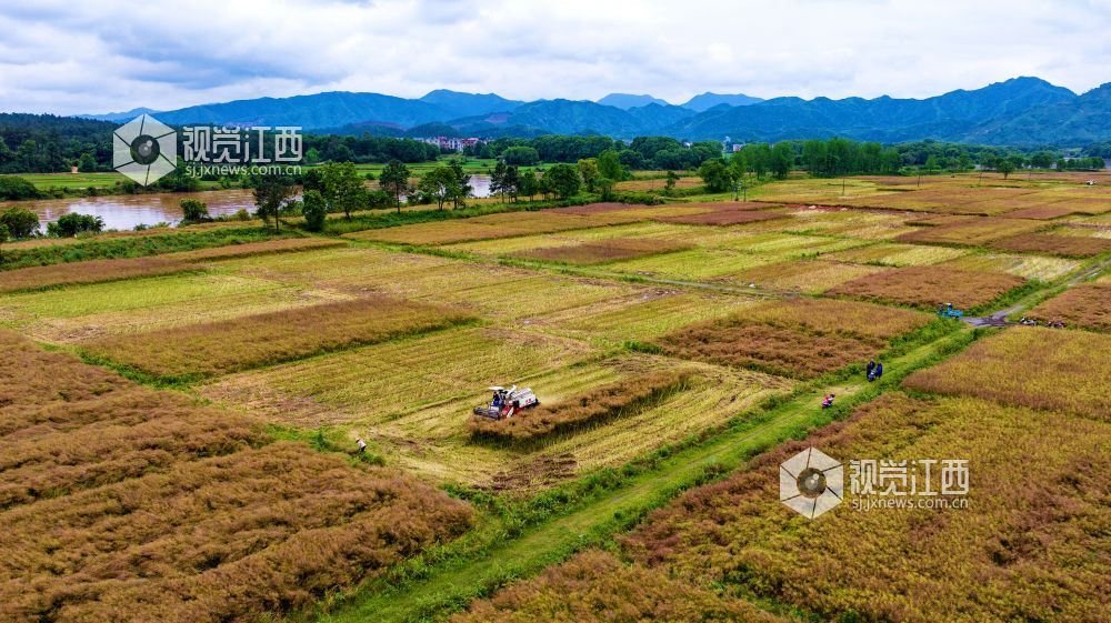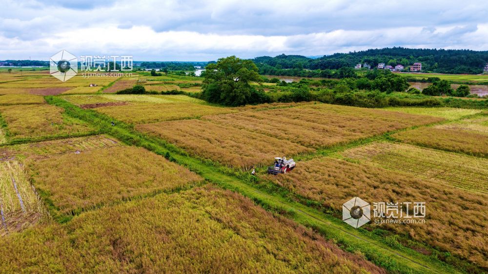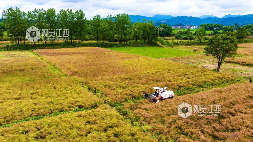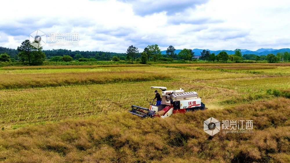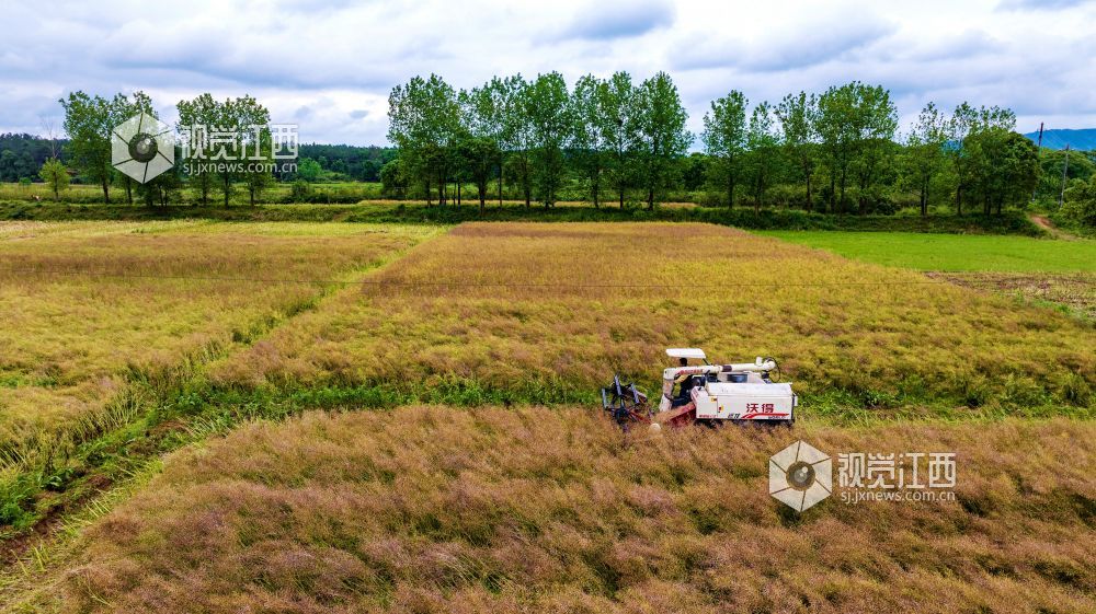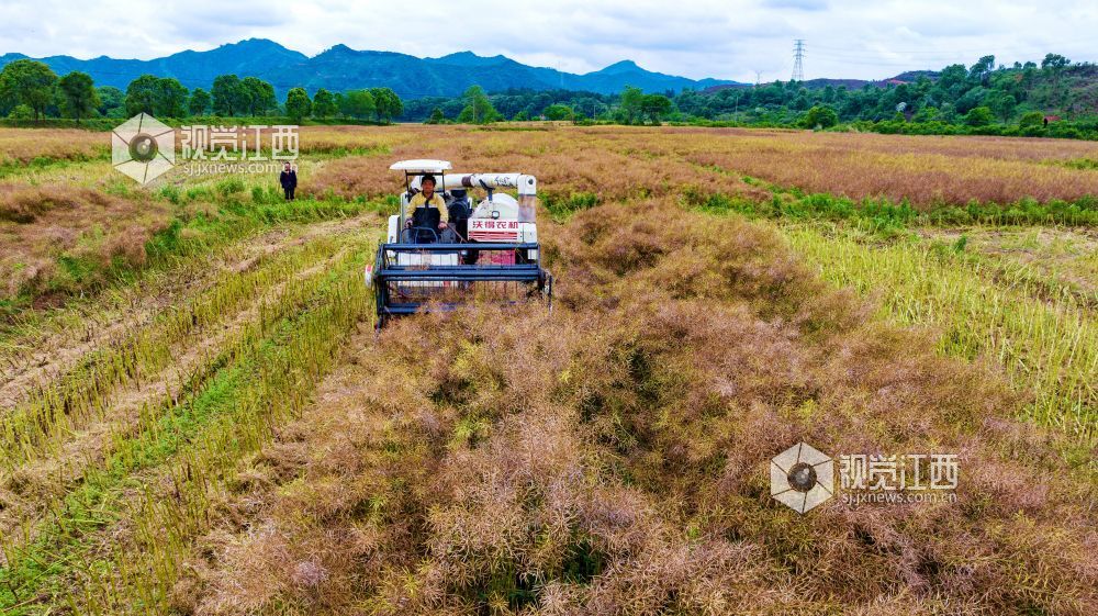 正值油菜丰收季,江西省吉安市吉水县广大农户抢抓农时加快油菜收割,田间一派繁忙景象。