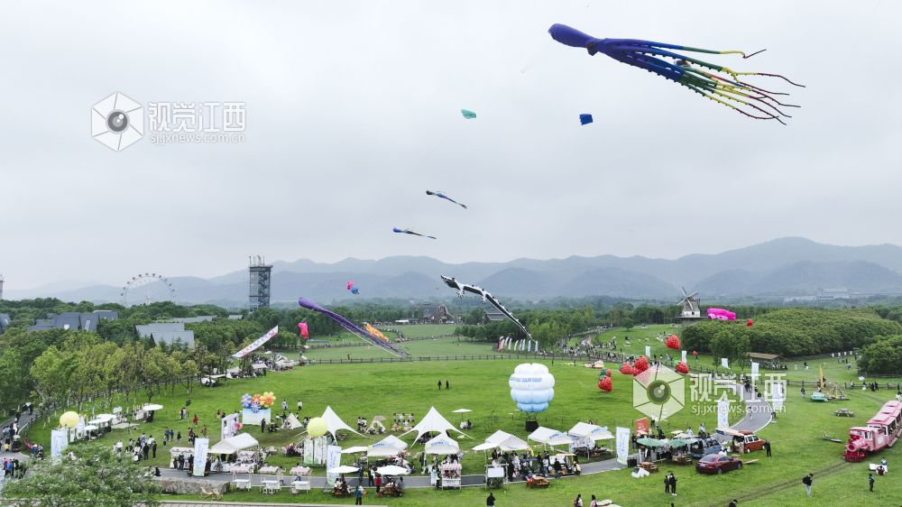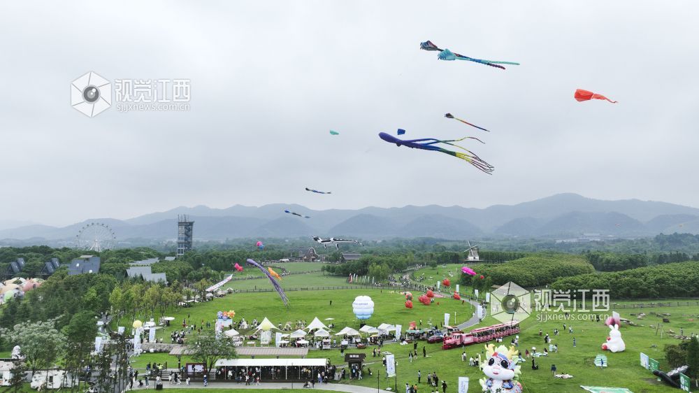 2024年5月2日,江西省萍乡市芦溪县仙凤三宝园景区举行第六届风筝野餐节,吸引游客来此游玩,助力旅游消费升级。