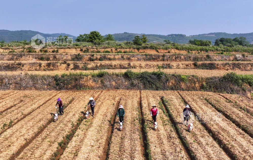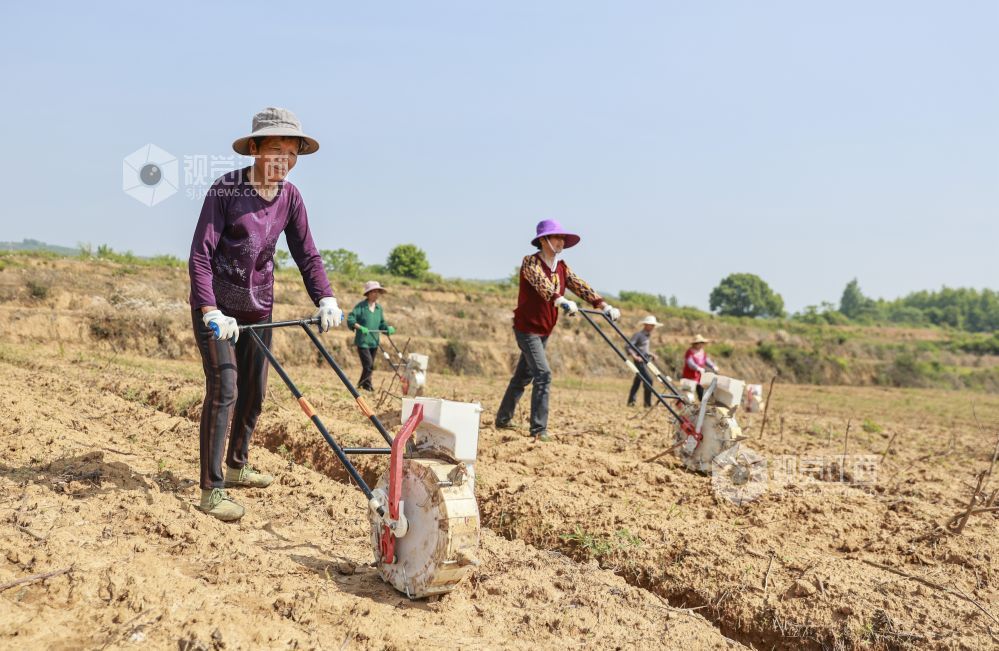 2024年5月8日,江西省瑞昌市范镇陡岗村,村民驾驶手推式播种机正在播种棉种。初夏时节,当地村民抢抓气温回升土壤墒情好的有利时机播种棉花,田间地头一派繁忙景象。