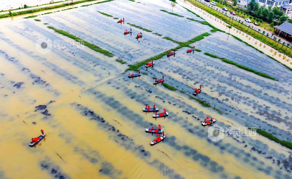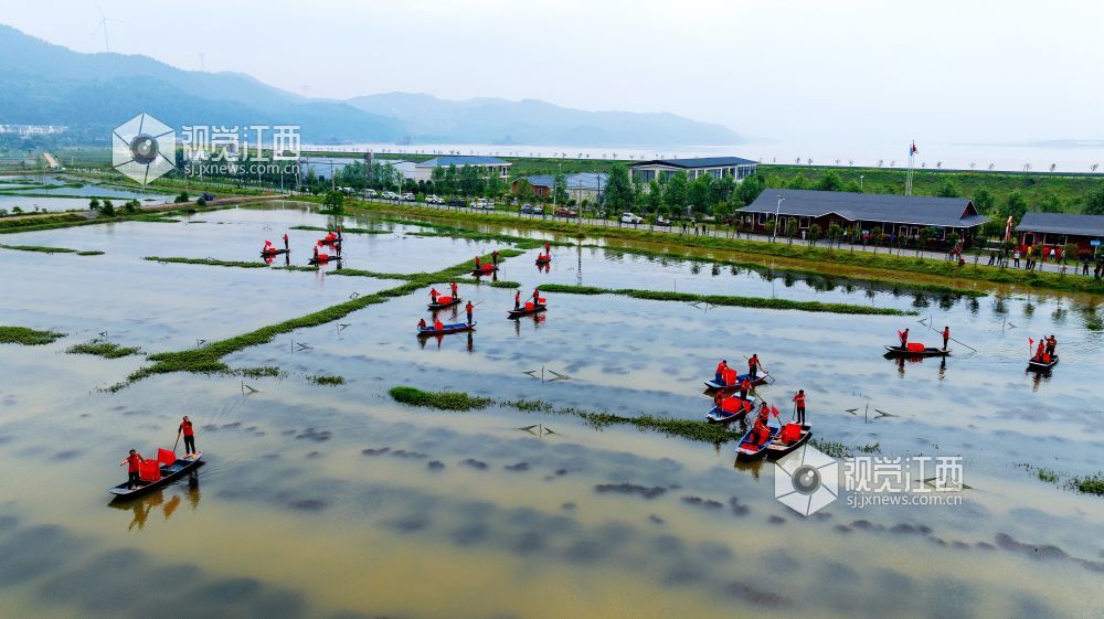 2024年5月10日,江西省吉安市吉水县盘谷镇万亩稻渔产业基地热闹非凡,村民舞起国家级非遗鳌鱼灯,锣鼓声起,一声“开捕”,万众呼应,虾农划船开捕小龙虾。