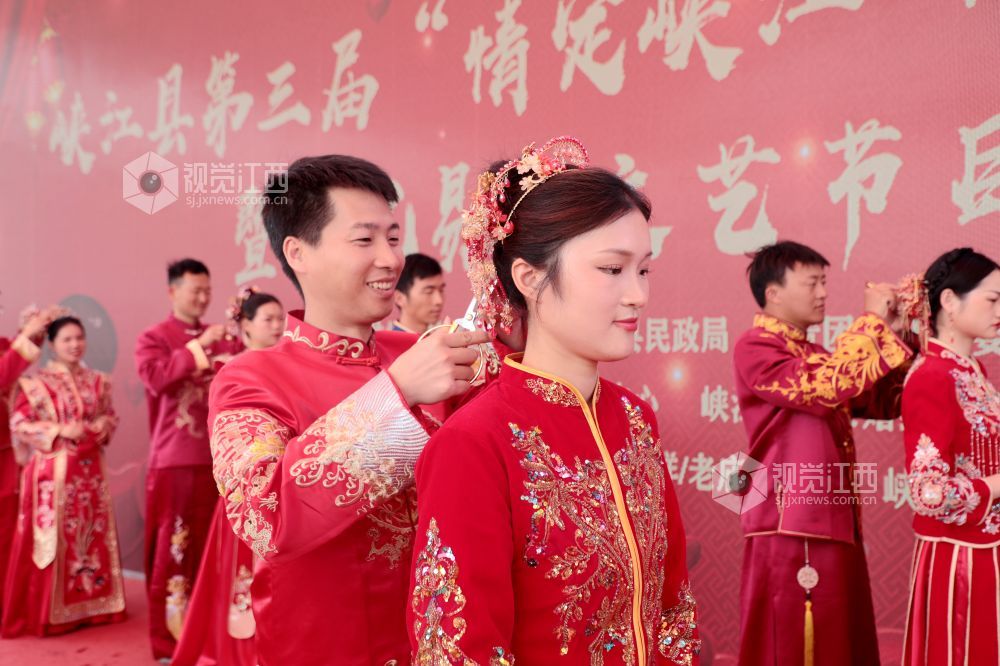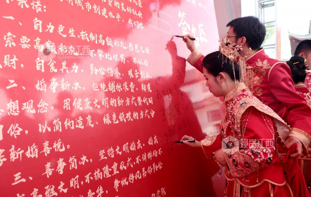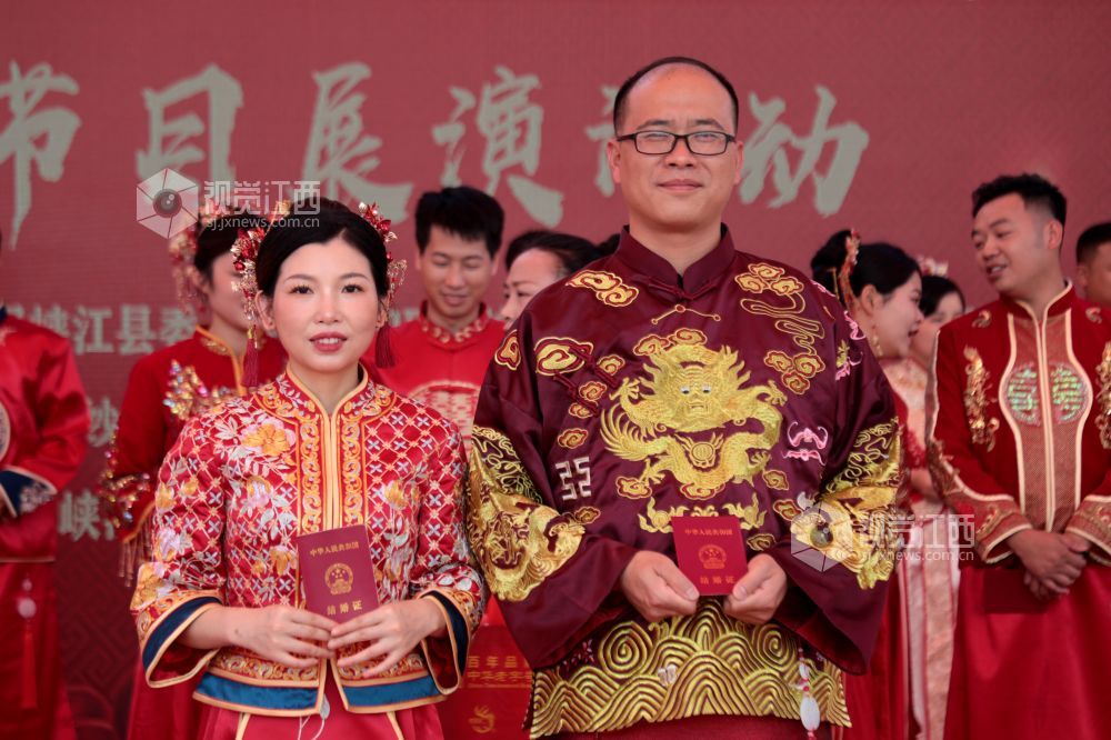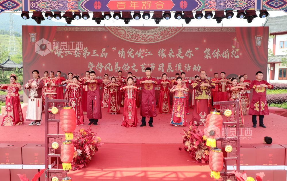2024年5月18日,江西省吉安市峡江县举行第三届“情定峡江 缘来是你”集体婚礼暨移风易俗文艺节目展演活动,18对新人通过信物互换、签订移风易俗承诺书等,践行和倡导婚事新办、喜事简办、移风易俗新观念,营造节俭办婚、勤俭持家的文明新风尚。