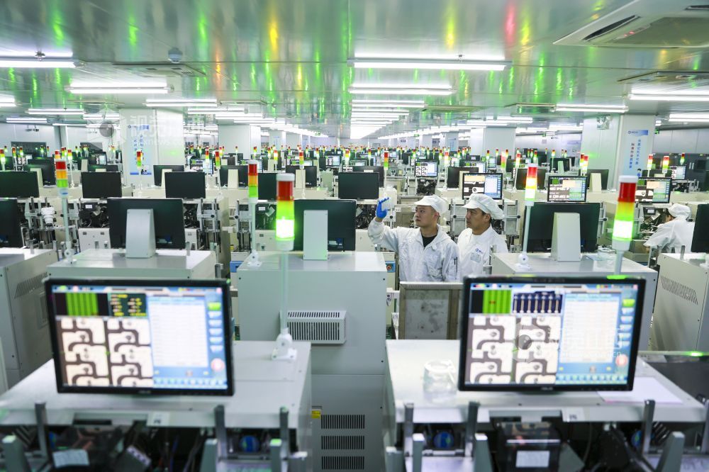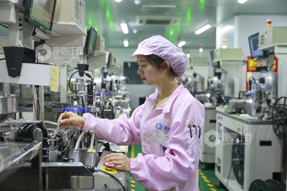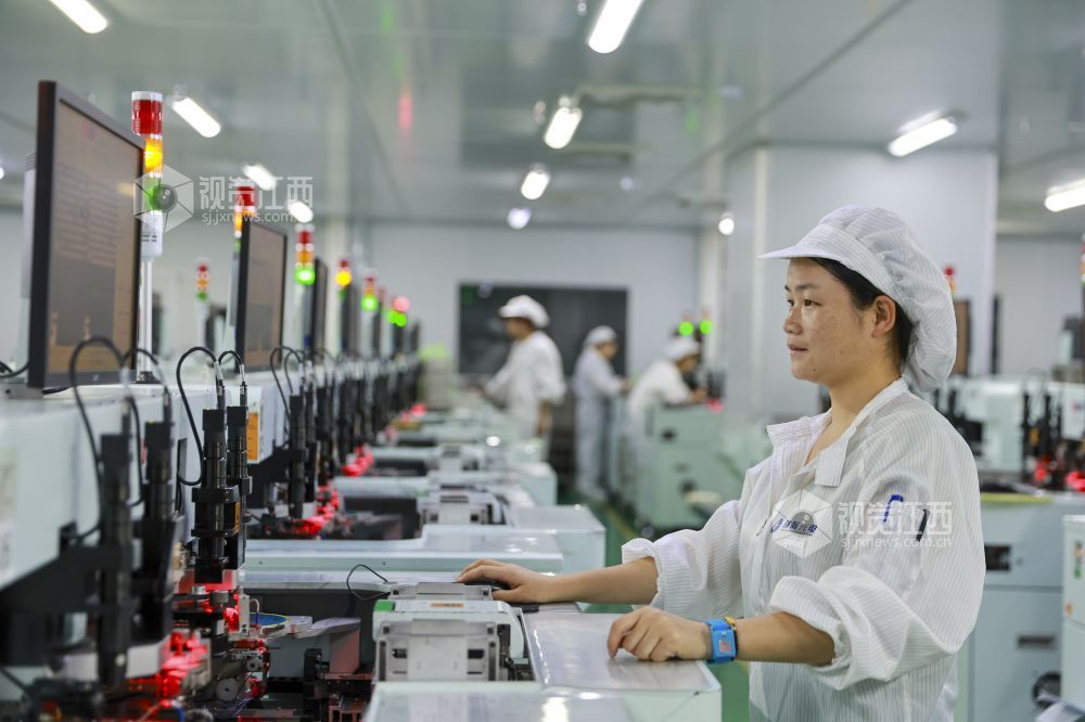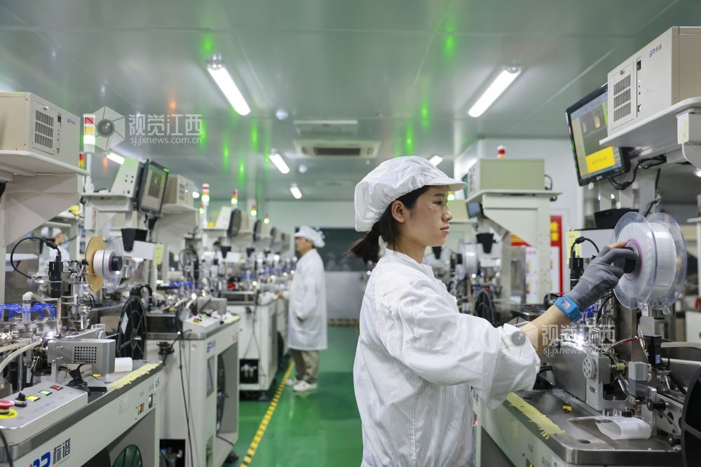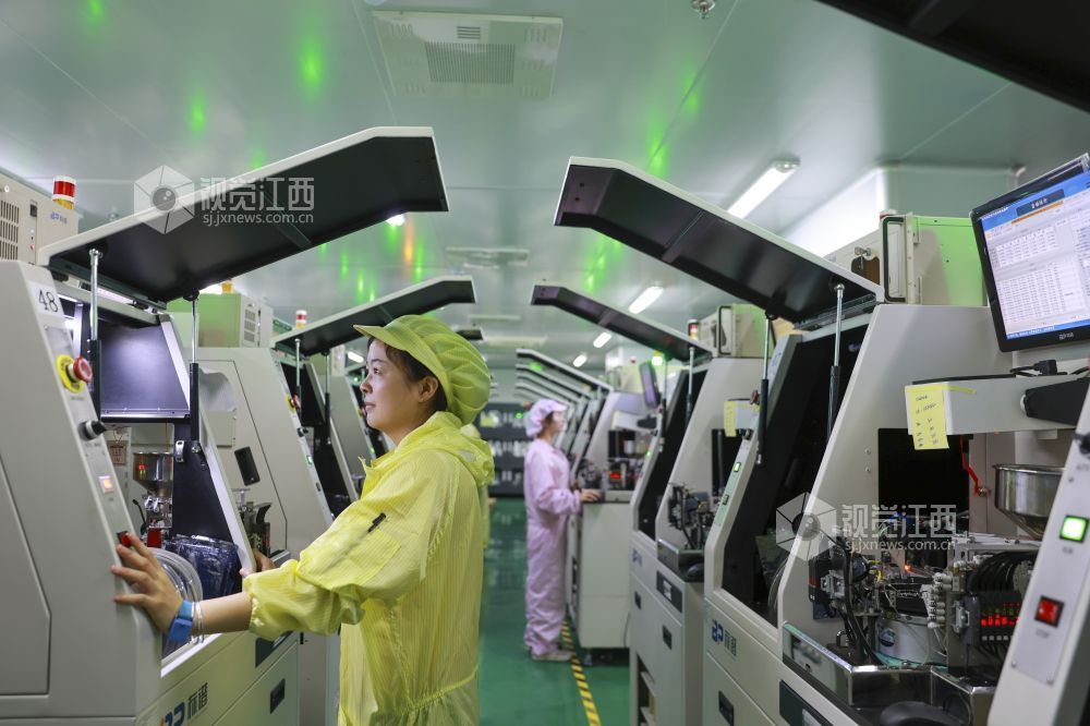 2024年5月20日,江西省瑞昌经开区科技园江西瑞晟科技有限公司生产车间内,工人们正在智能生产线上赶制订单。