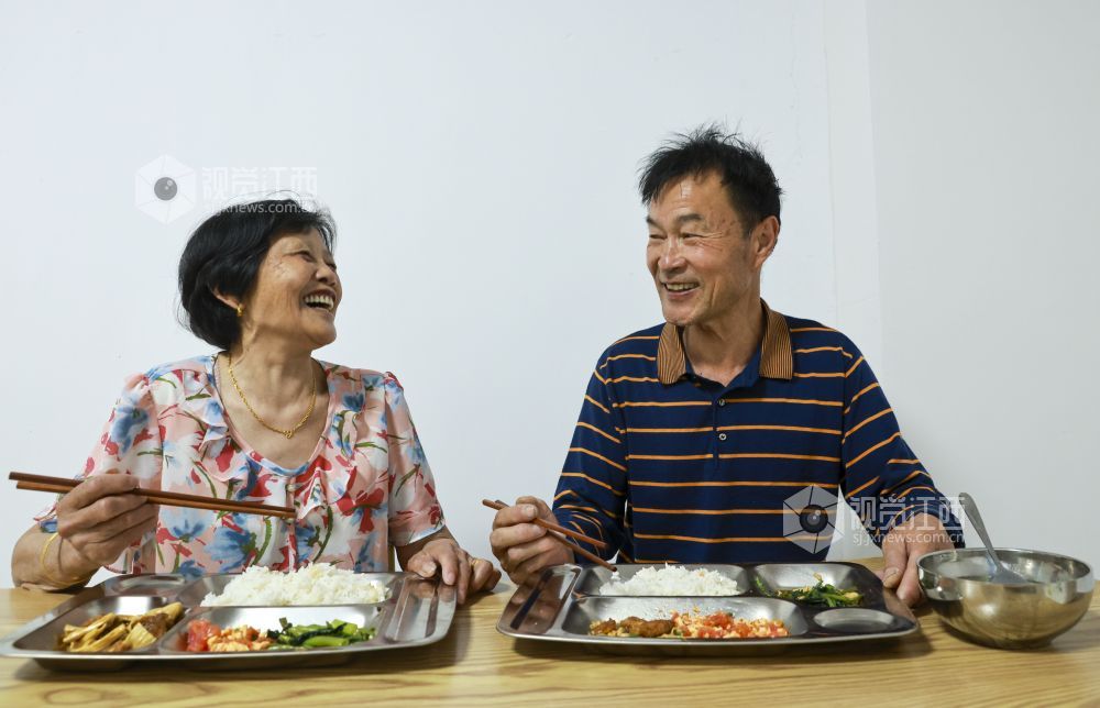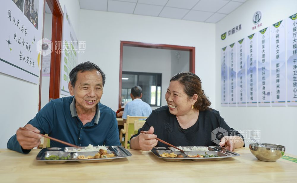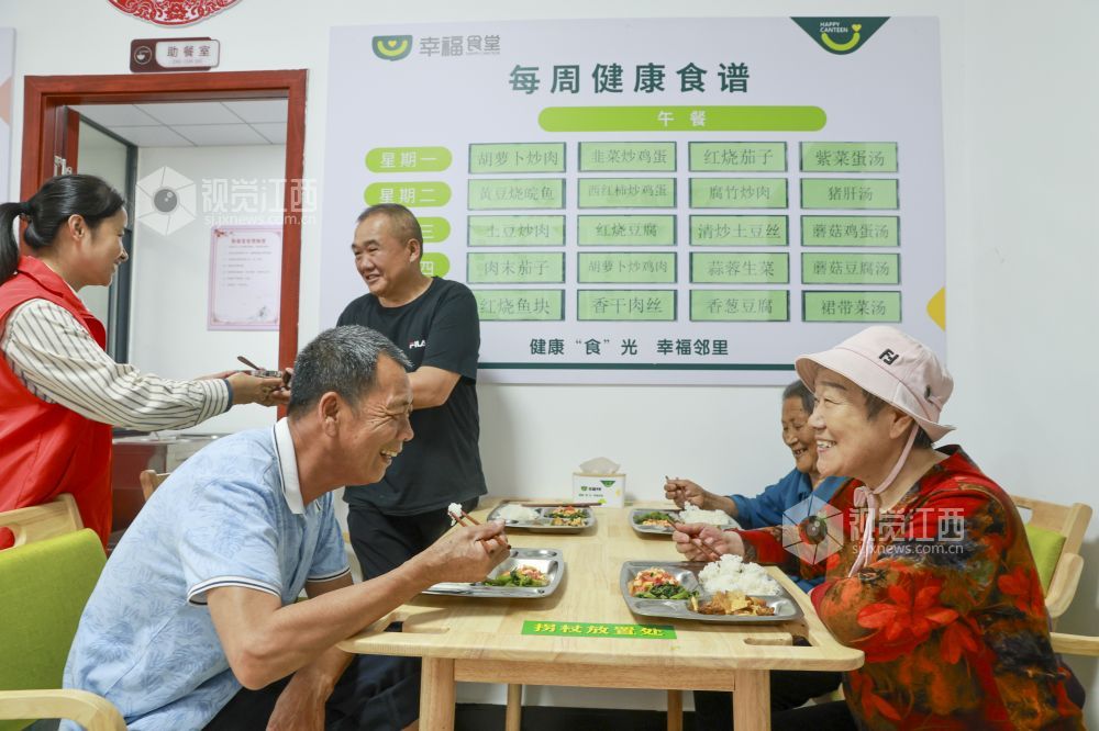 2024年5月20日,江西省瑞昌市桂林街道黄湾社区,老人们在社区幸福食堂享受午餐。