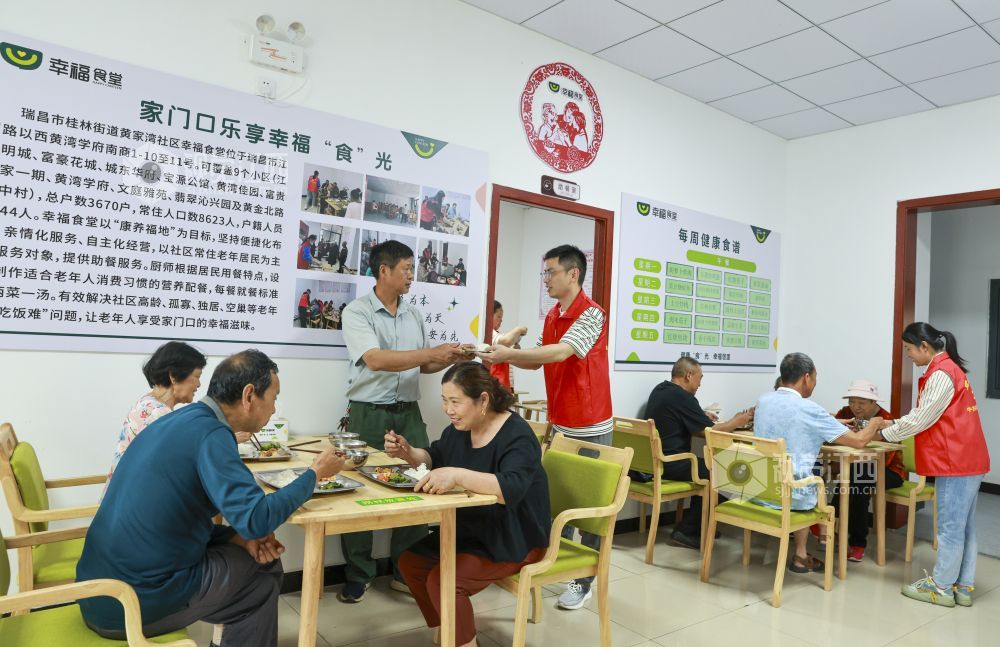 为解决社区老年人“行动不便,做饭不易”的生活问题,瑞昌市桂林街道黄家湾社区于今年4月开通幸福食堂,为辖区内60岁以上老人提供便捷、营养、价廉的就餐服务,并为行动不便的老年人提供预约送餐服务,受到群众欢迎。