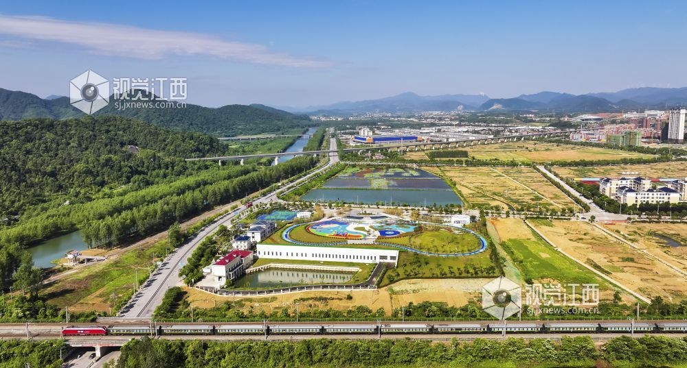 2024年5月28日,俯瞰江西省瑞昌市城西污水处理厂,蓝天白云、绿意盎然。