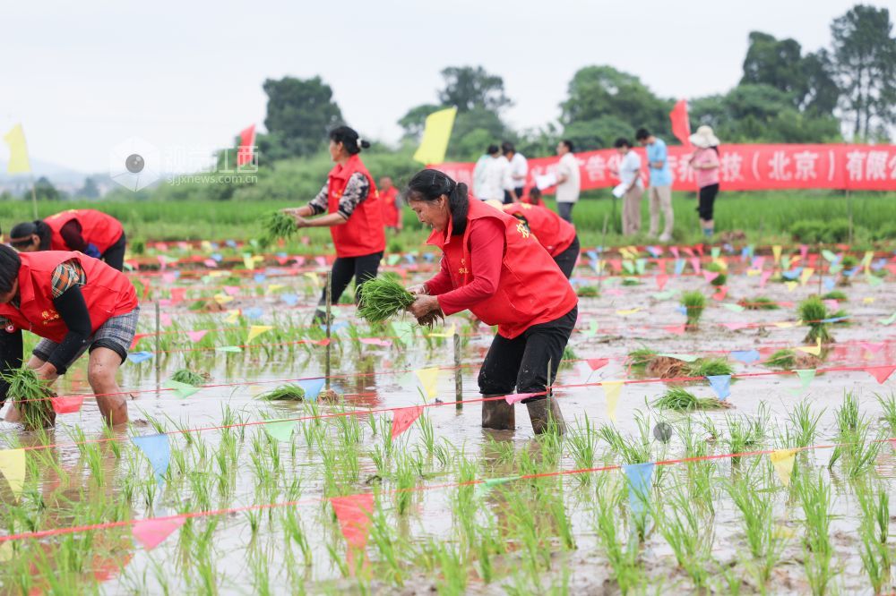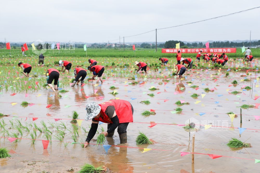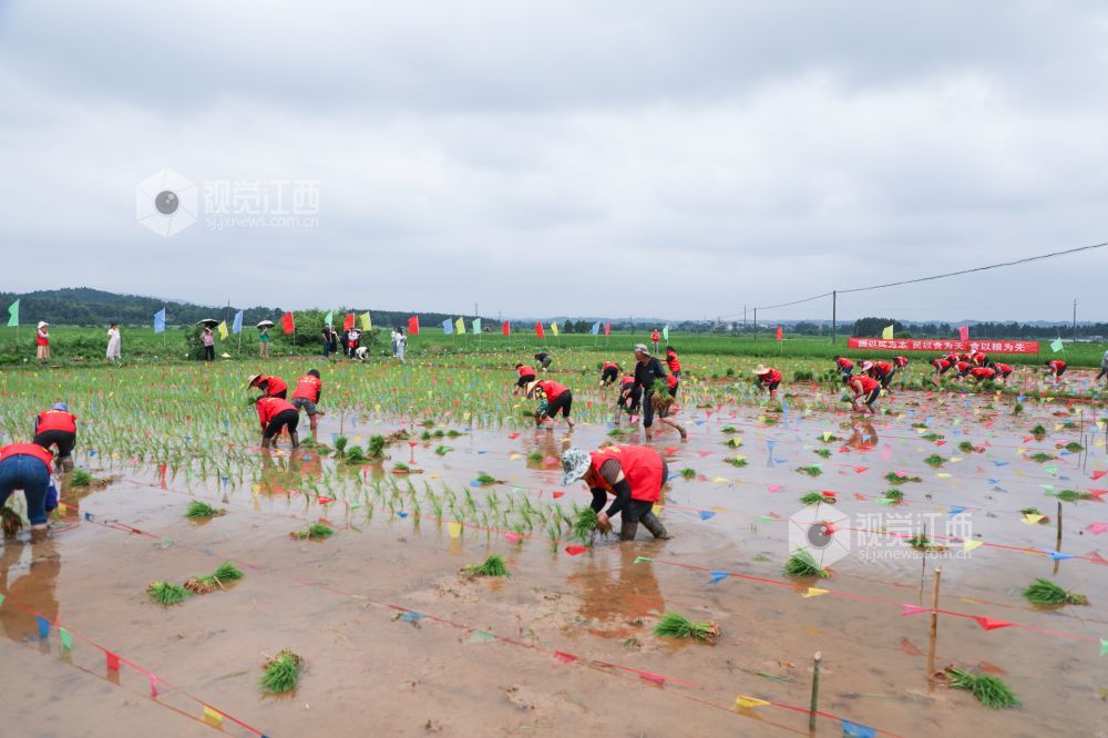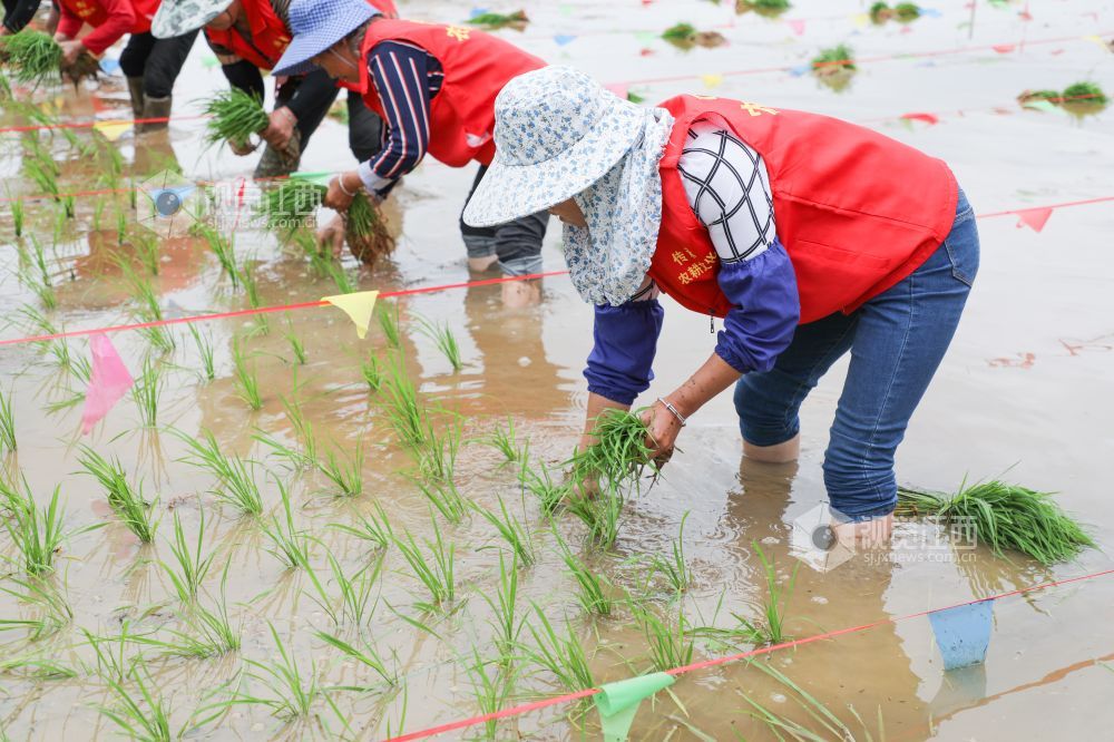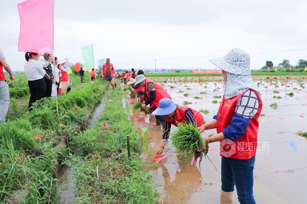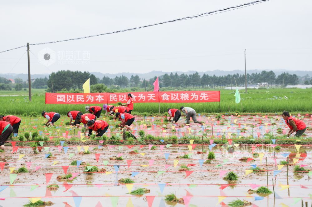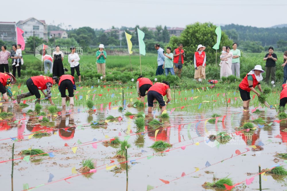 5月28日,在江西省泰和县禾市镇治冈村,农民齐聚田间,在这里举行插秧比赛。比赛现场,竞争激烈却又不失和谐,欢声笑语此起彼伏,勤劳的身影在稻田中穿梭,构成了一幅生动的农耕画卷。