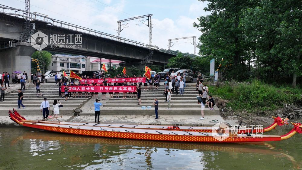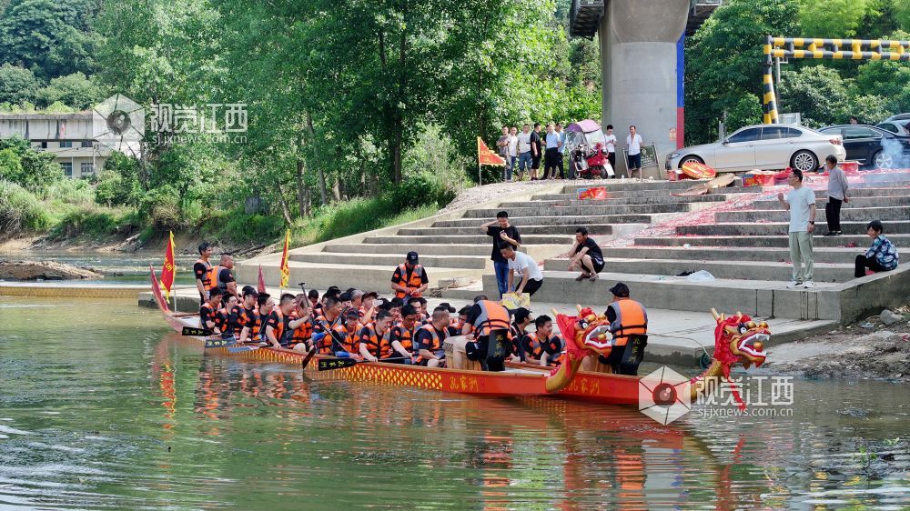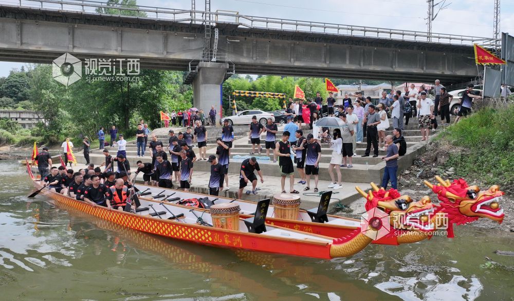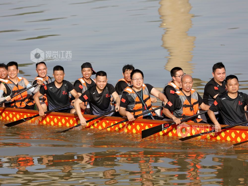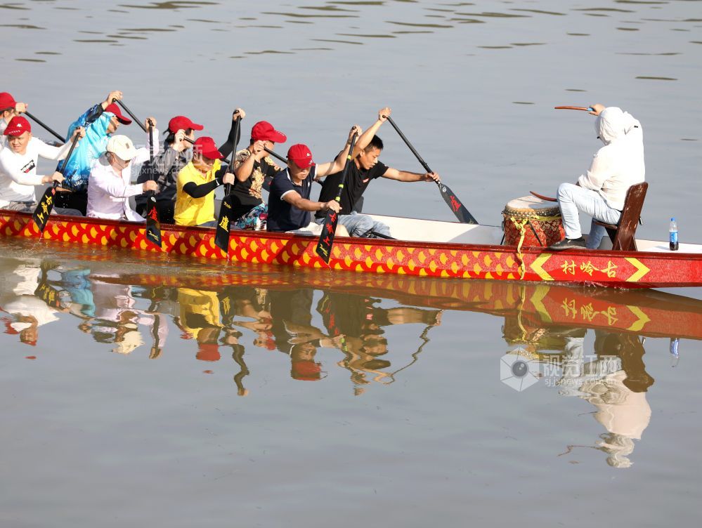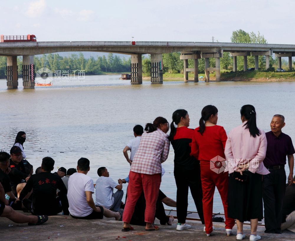 2024年5月28日,江西省分宜县分宜镇角元村孔家洲村小组的村民在村庄附近的袁河水域训练划龙舟,备战村庄自发的端午龙舟赛。