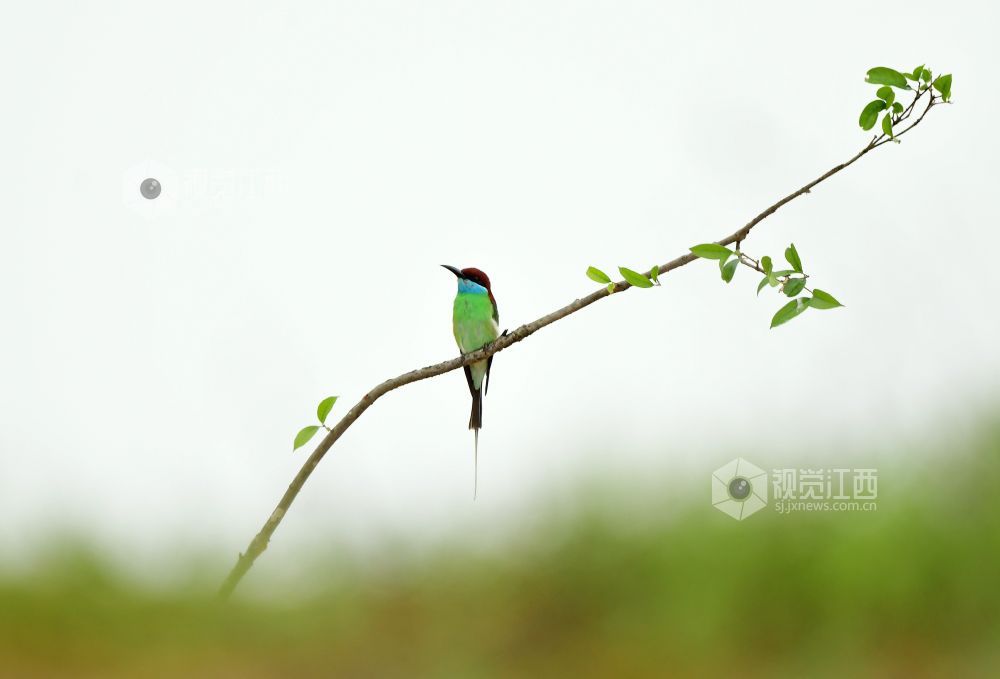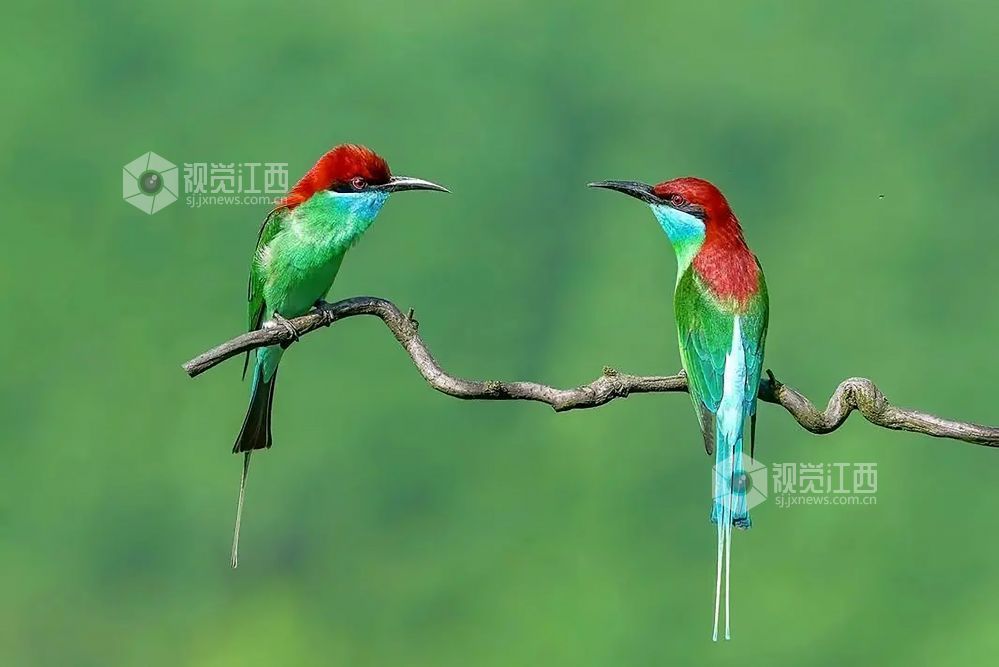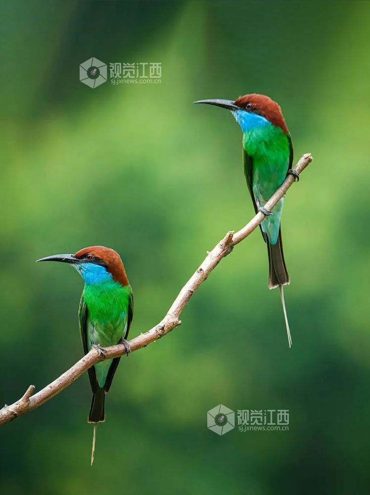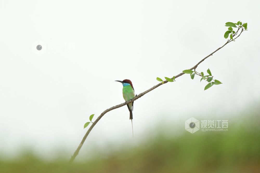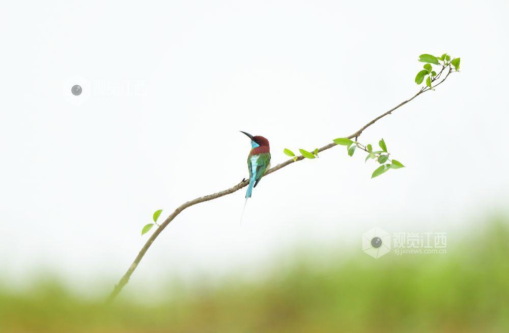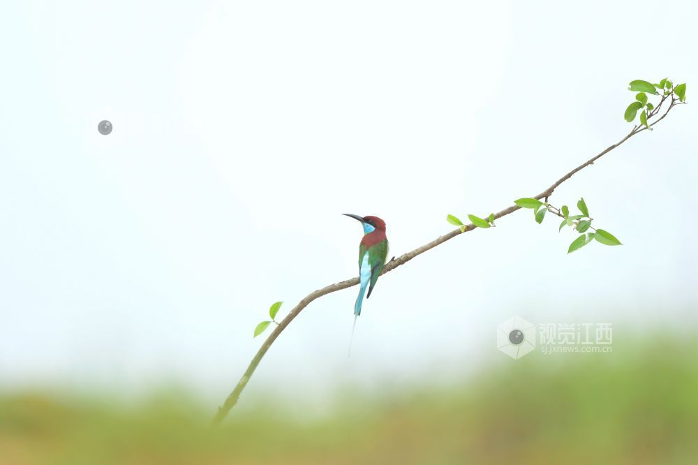 6月初,江西九江濂溪区姑塘镇鄱阳湖畔沙丘的疏林和灌丛间,数只“中国最美的小鸟”蓝喉蜂虎,在树枝上时而静立休憩,时而凌空起舞,绘成了一幅美丽的自然生态画卷。