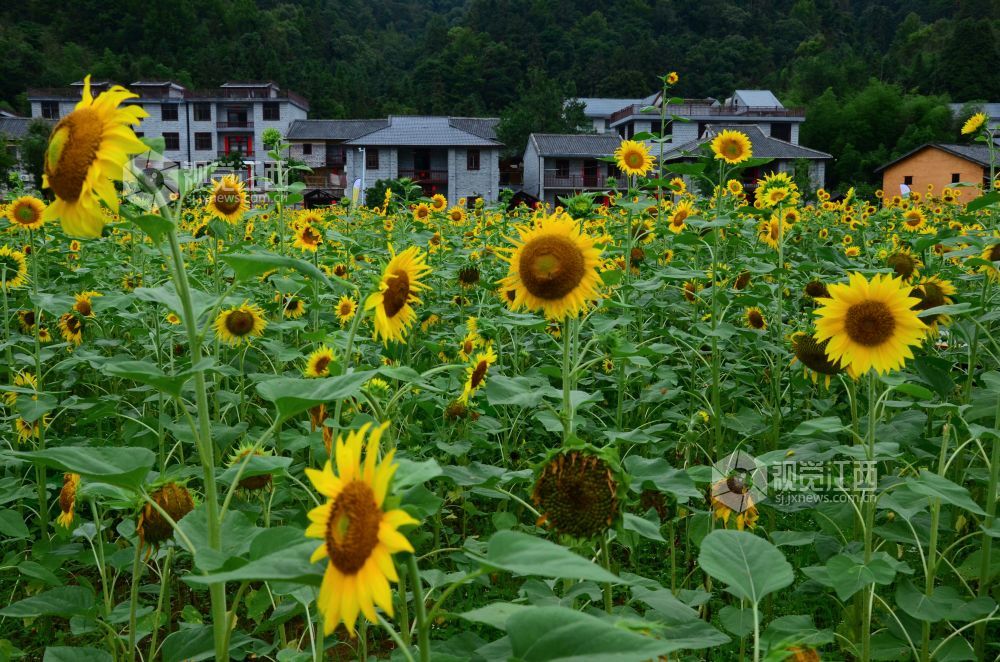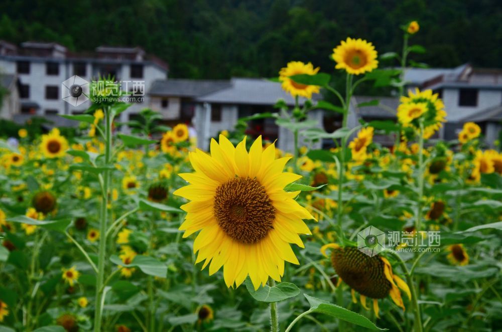 6月12日,在江西省永新县三湾乡的葵花园里,成片的葵花竞相开放,金灿灿的花朵迎风摇曳,绵延似海,美不胜收。