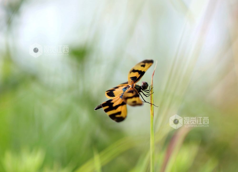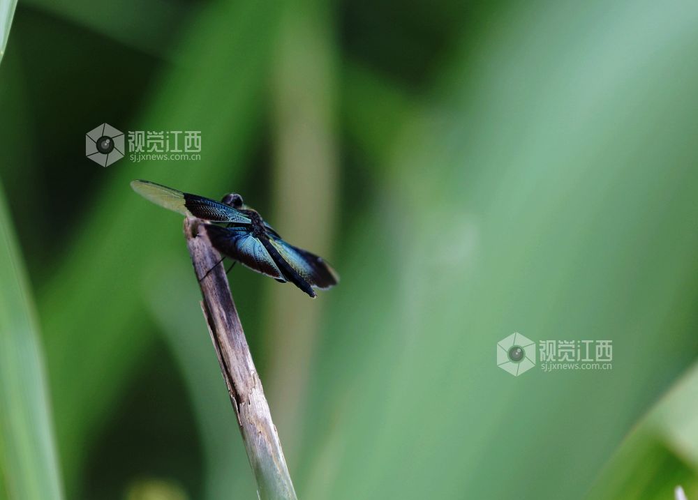 2024年6月16日,在江西省分宜县分宜镇横溪村境内袁河的岸边,出现许多少见的斑丽翅蜻和黑丽翅蜻,它们像一架架小飞机,时而在空中飞行,时而停歇于枝上,犹如一个个形态各异的舞者,成为夏日一道流动的风景。