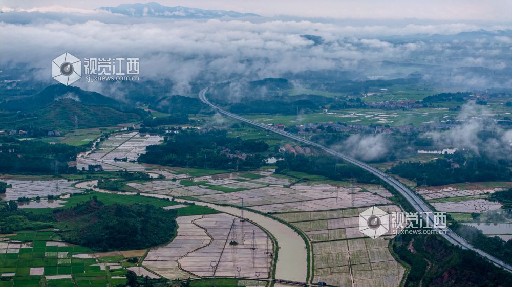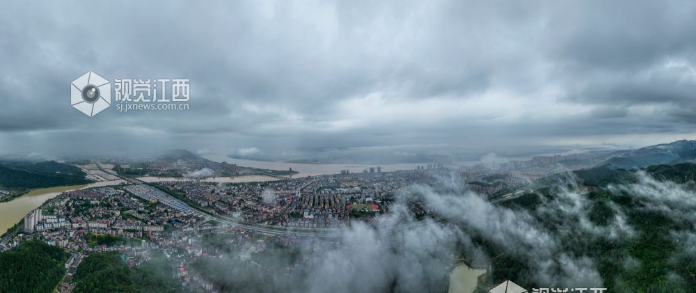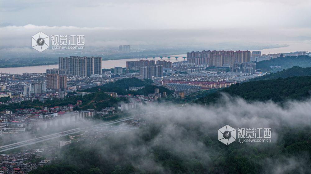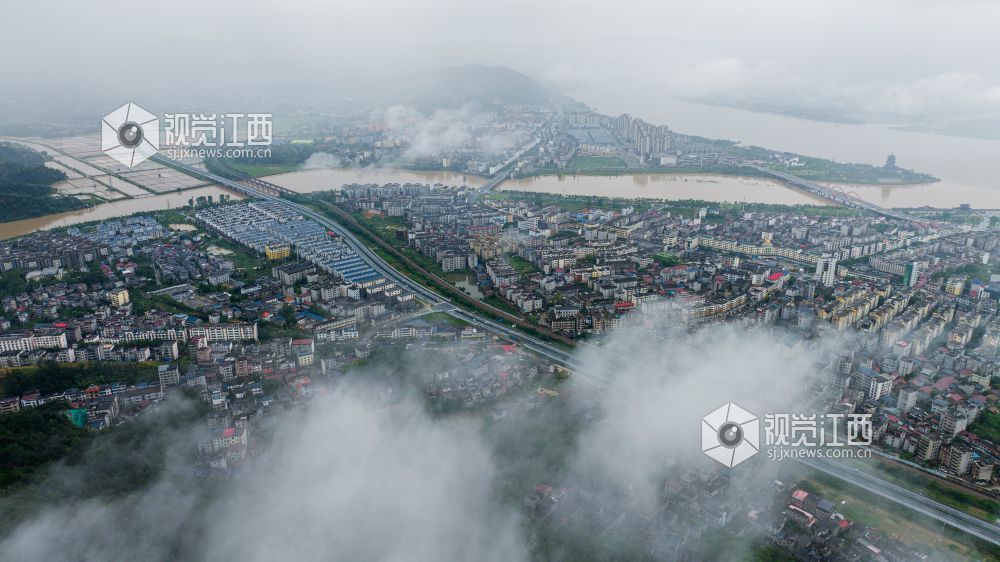 6月15日,连续几天阴雨天气,在江西省吉安市吉水县城及周边区域的上空出现了云海景观。当日清晨,云海徐徐而来,整个吉水县城被浓厚的平流雾所笼罩,云海环绕山峰,云雾层层叠叠,建筑物、山峦在雾气中若隐若现,如诗如画,宛若仙境。