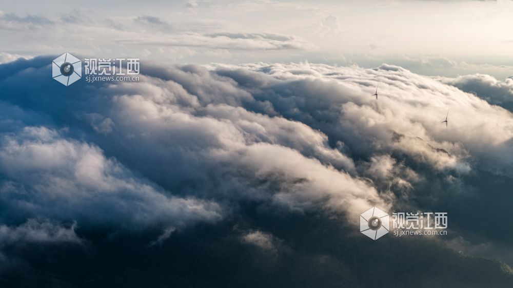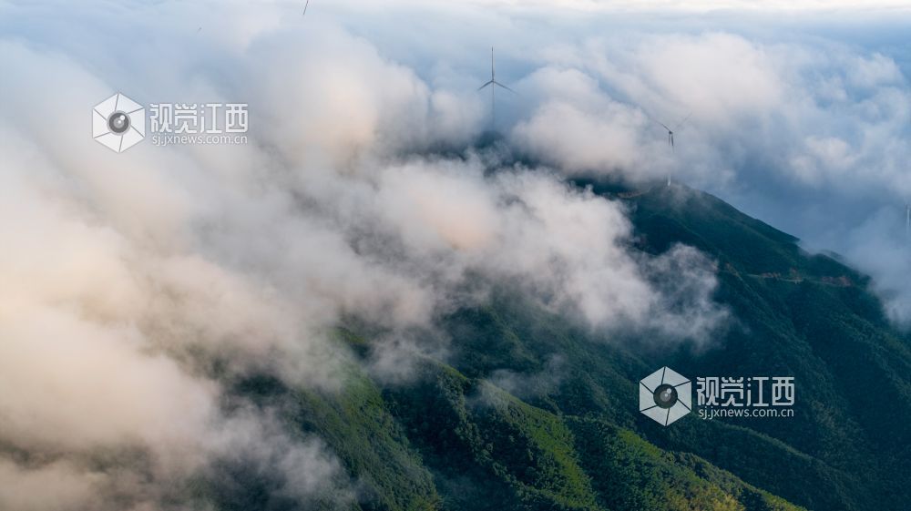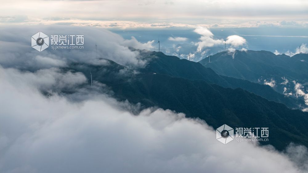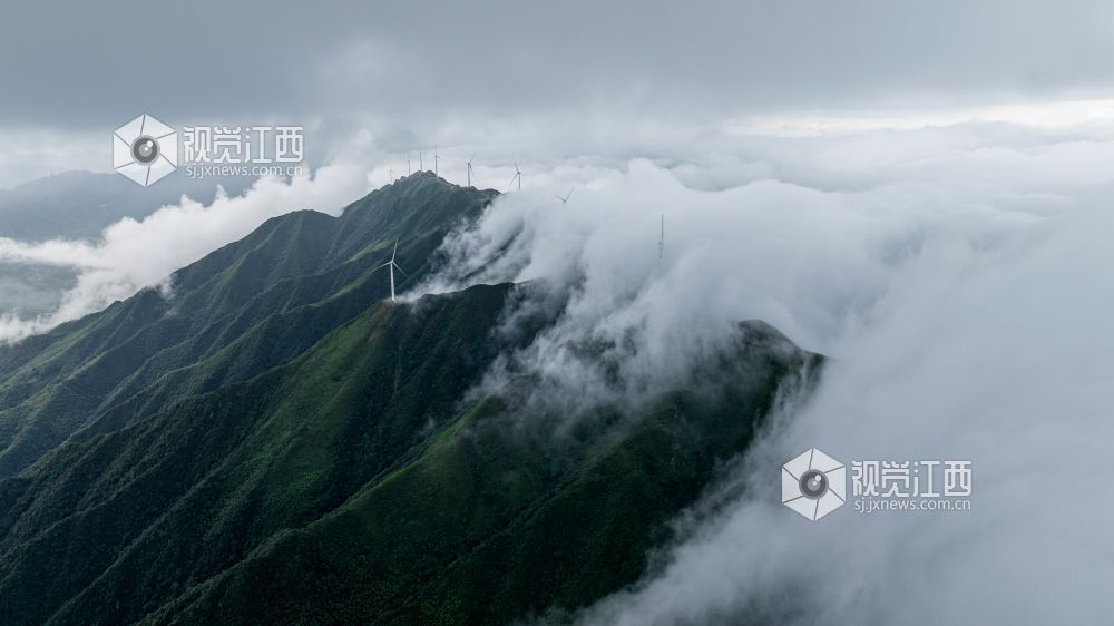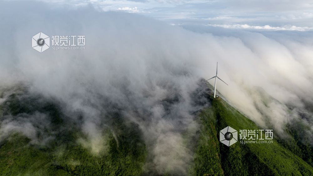 6月16日,在江西省吉安市泰和县十八排出现云海奇观,白茫茫的云海在山间奔涌,时而飘逸如轻纱,时而翻滚似波涛,山峦、风车在云雾中时隐时现,构成一幅奇妙壮观的画卷。