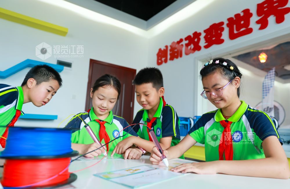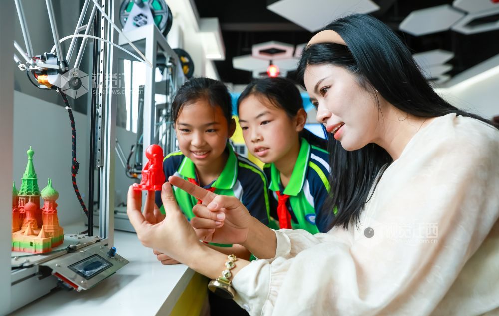 2024年6月20日,江西省瑞昌市第七小学,学生在3D打印教室学习体验3D打印设备原理及设计创作等知识。瑞昌市第七小学通过开设特色科技课程,将3D打印等科技含量高的设备引进校园,培养学生们动手实践能力,更好地促进学生提高综合素质。