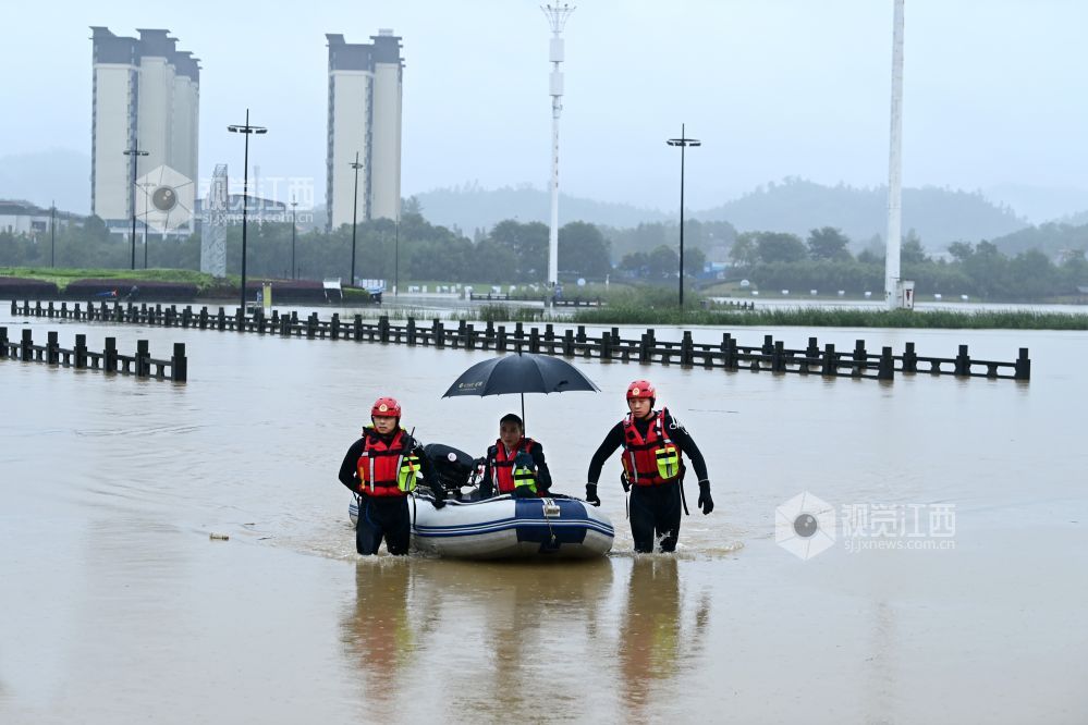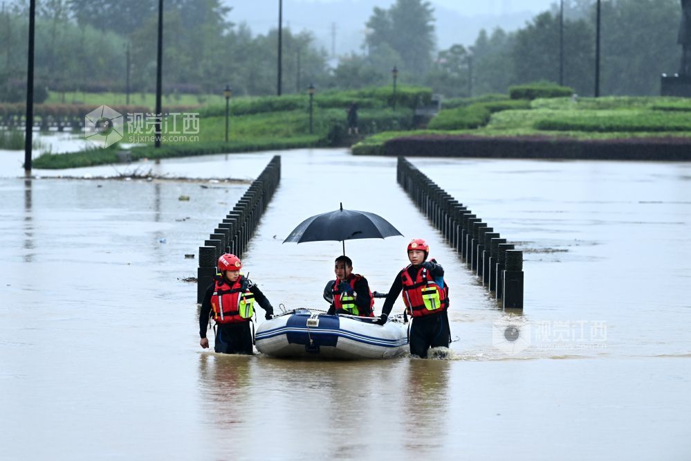 2024年6月25日,受连续强降雨影响,江西省宜春市万载县龙湖公园发生洪水内涝,湖中李畋广场被淹,水位还在不断上升,情况危急,受困垂钓者急需转移。万载县消防救援大队队员接到报警后按照抢险救援预案奔赴一线,抢救人民群众生命财产安全。