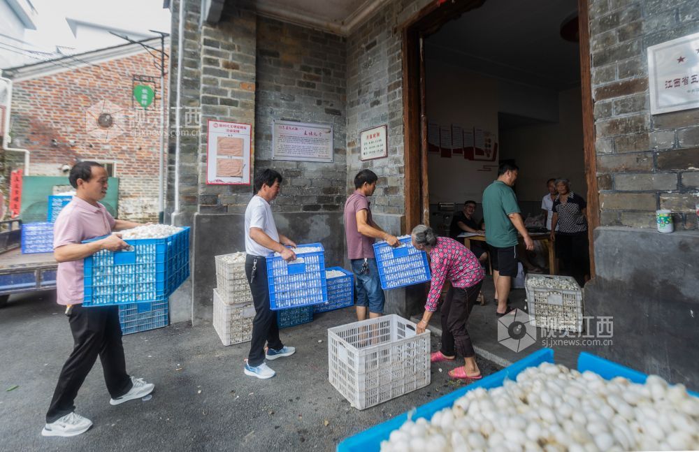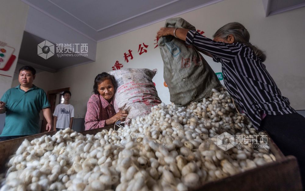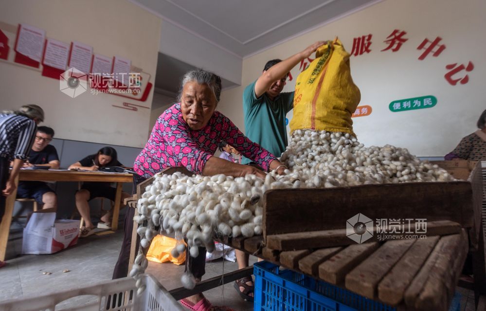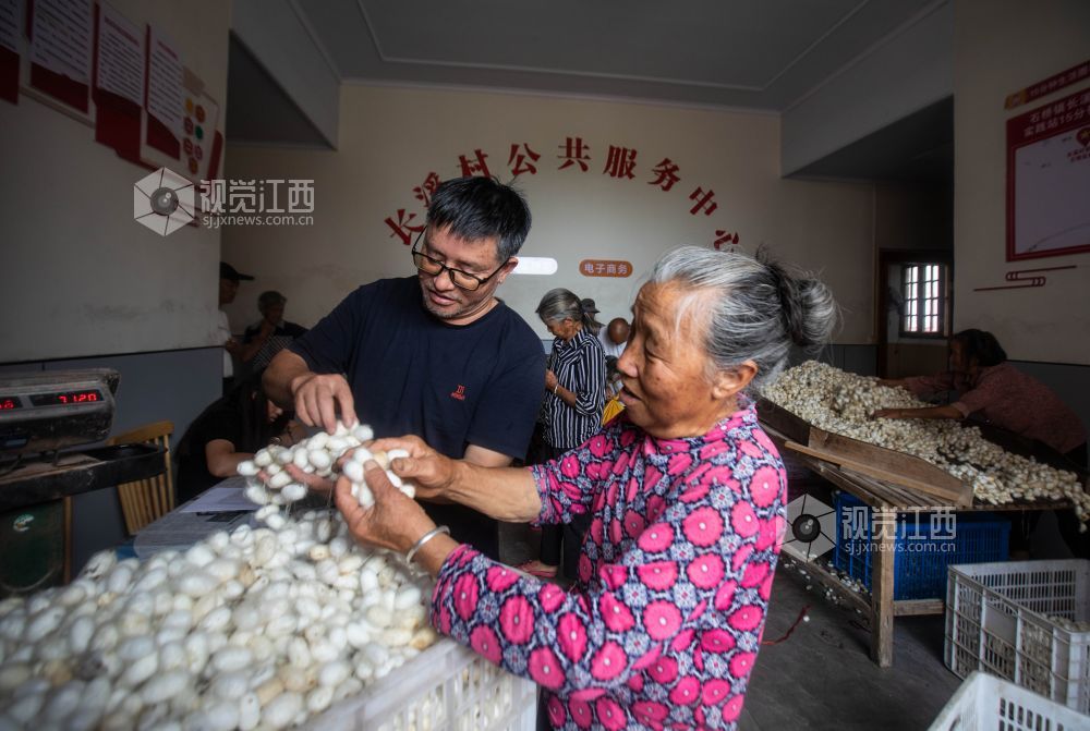 眼下正是蚕茧丰收期,6月28日,在江西省永新县石桥镇长溪村蚕茧收购点上,前来售卖蚕茧的村民络绎不绝。工作人员正忙着称重量、测级别、登记结算,现场一派热闹繁忙的景象。