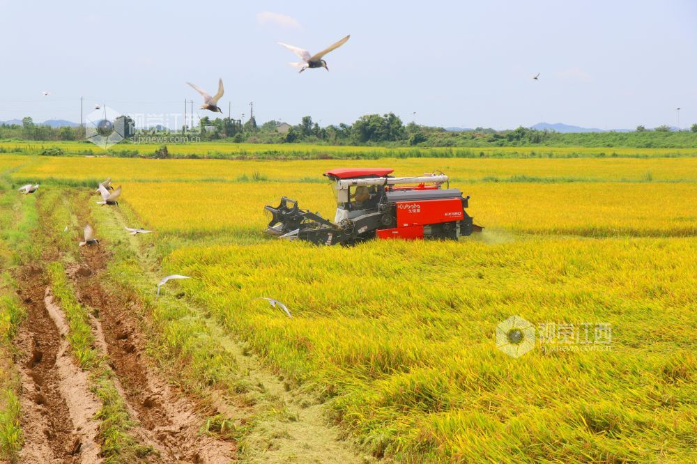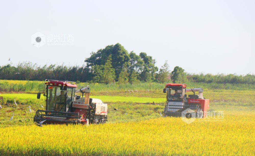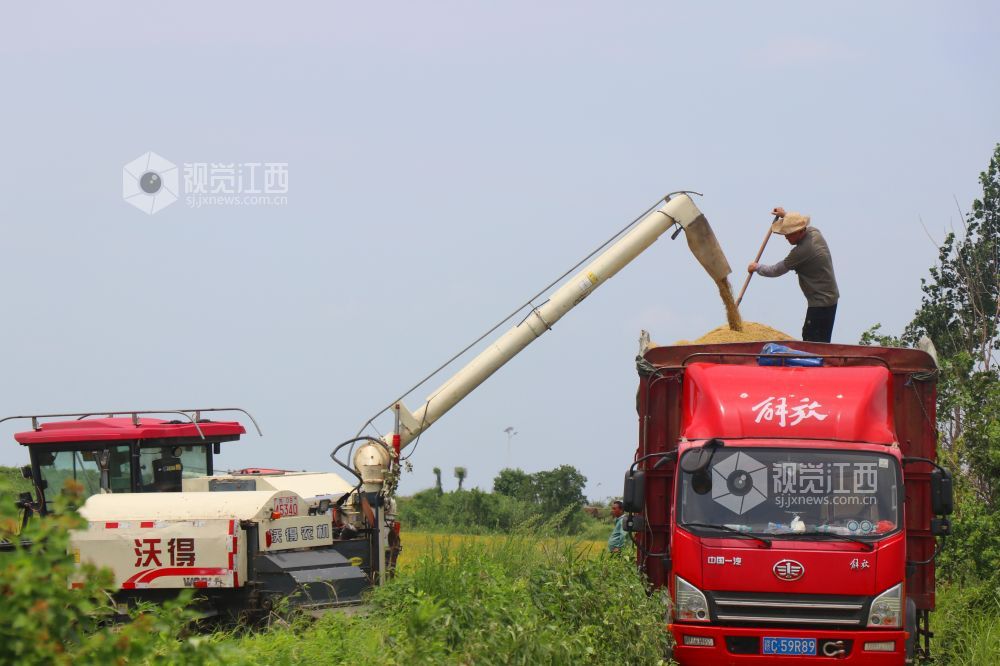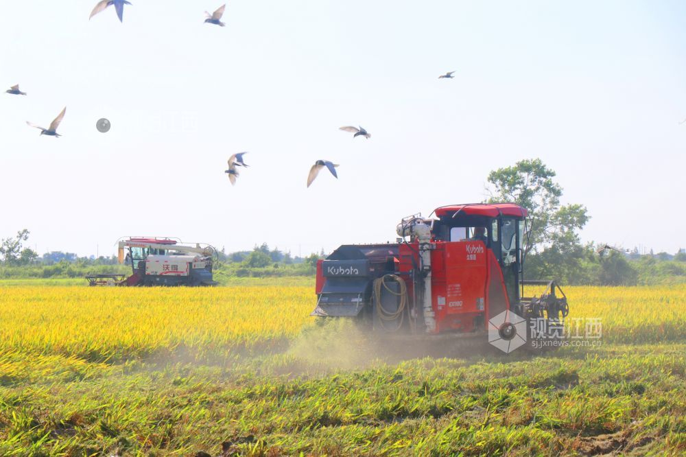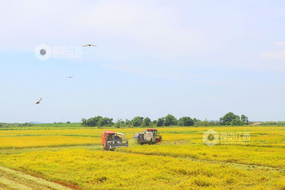 小暑节气,江西省余干县早稻陆续成熟,当地抢抓农时,积极组织机械力量进行收割,确保粮食丰产丰收,田间地头一派繁忙的景象。