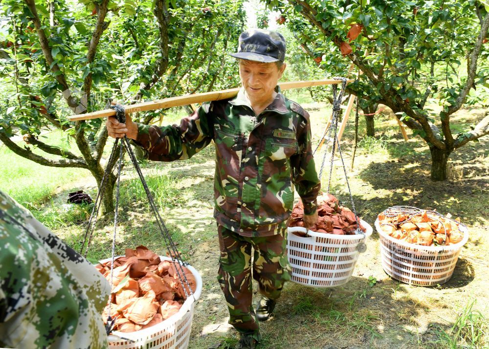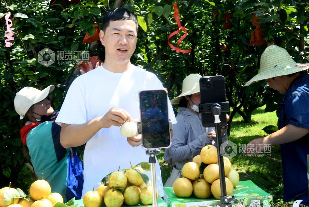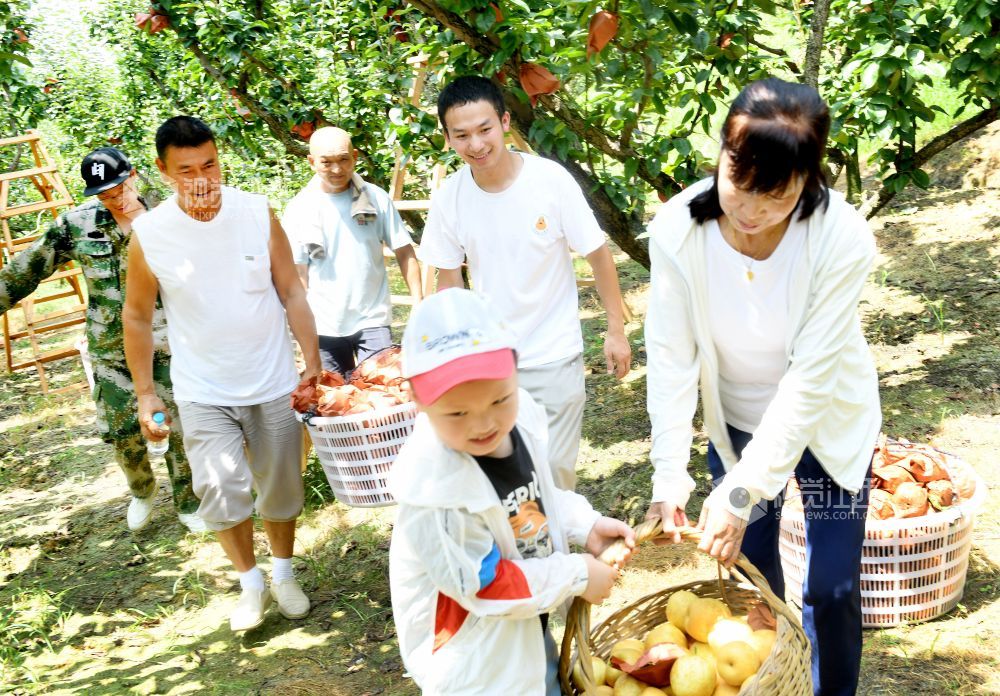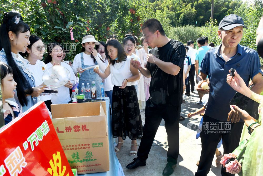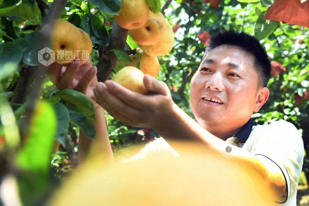 2024年7月16日,在江西省上饶市广丰区吴村镇塘边村,果农正在采摘天桂梨。