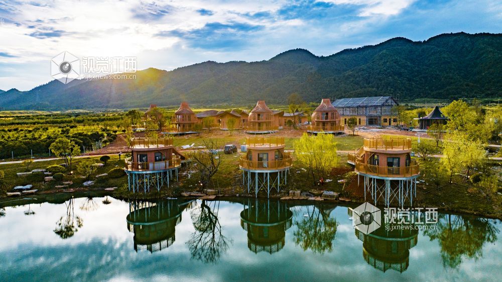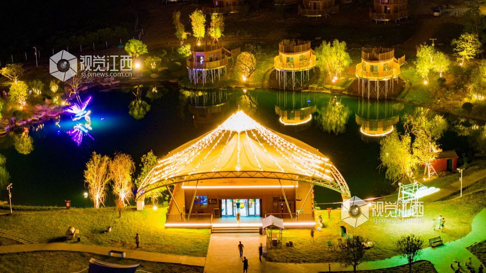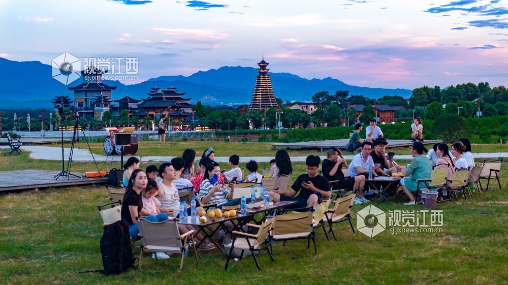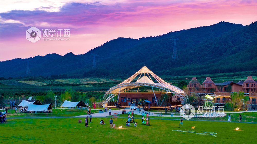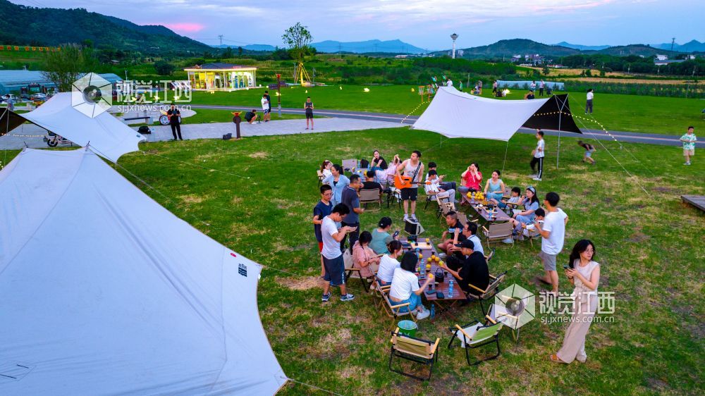 盛夏最适合回归山野,去山野间露营,近距离接触乡村生活的美好。7月20日,在江西省吉安市峡江县金坪蝴蝶泉星空野奢营地,浪漫风情小镇,还有大片的草坪,漫步其中,有一种神清气爽的感觉。游客们可以在草地上搭建帐篷,支起烧烤架,体验一场别开生面的户外烧烤派对。享受山野清风,静赏落日晚霞,感受大自然的魅力。