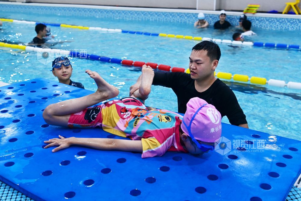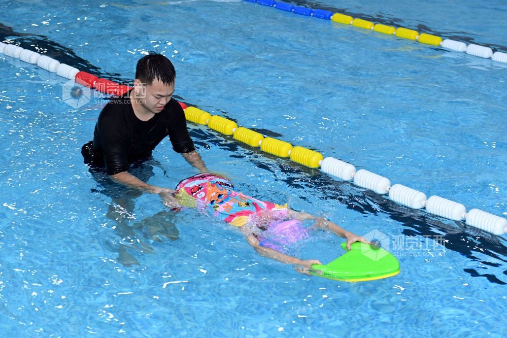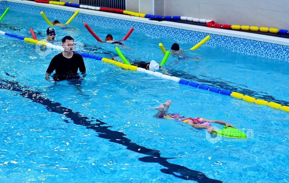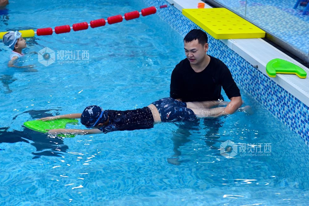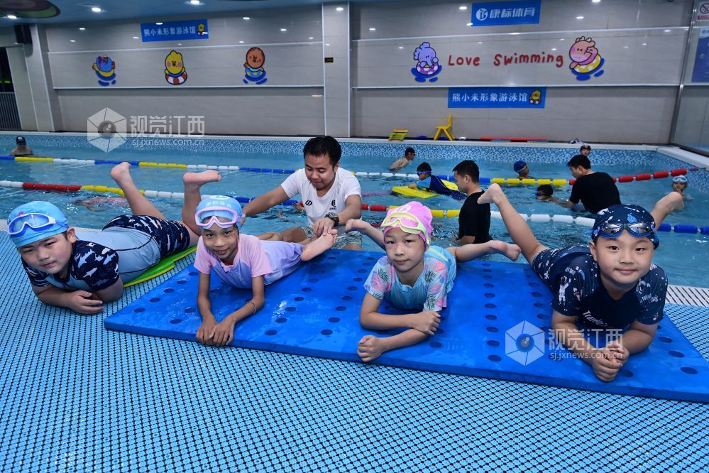 暑期期间,江西省宜春市万载县一些学生选择来到游泳馆,练习游泳技能,充实假期生活。