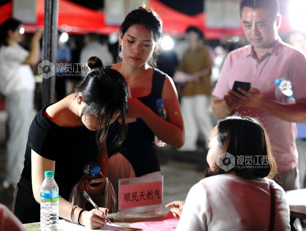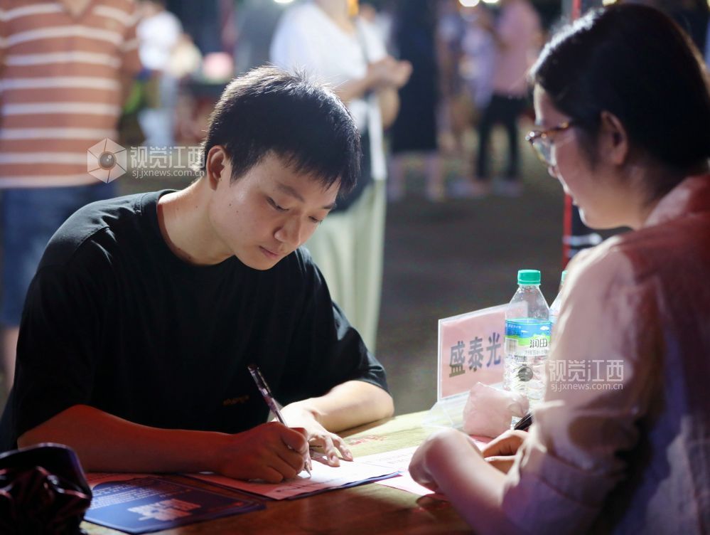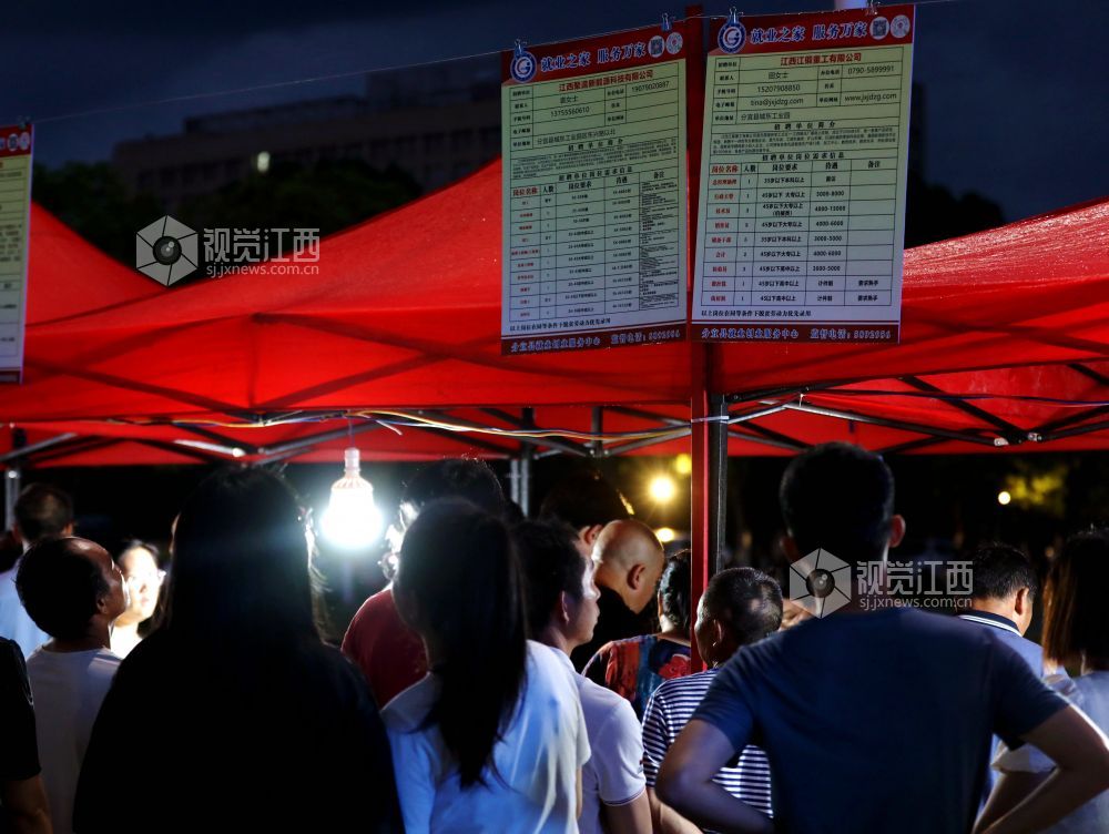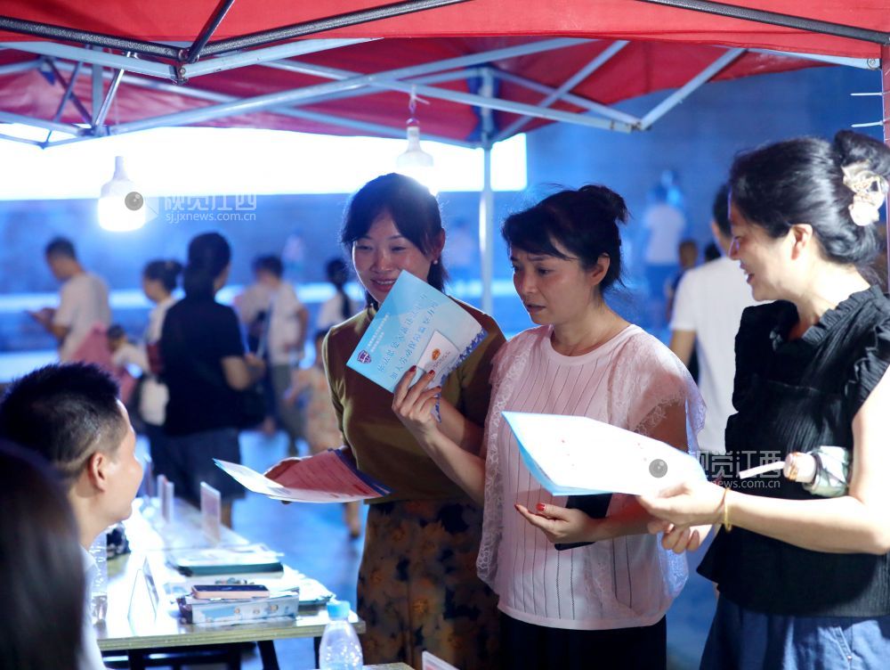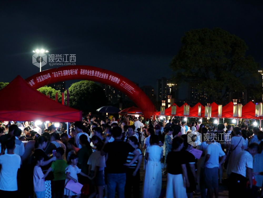 2024年7月26日晚,江西省分宜县在市民广场举行高校毕业生暨民营企业夜市专场招聘会。40家进场企业涵盖了光电信息、装备制造、锂电新能源等领域,提供900余个岗位,以夜市的“烟火气”为人才服务“聚人气”。