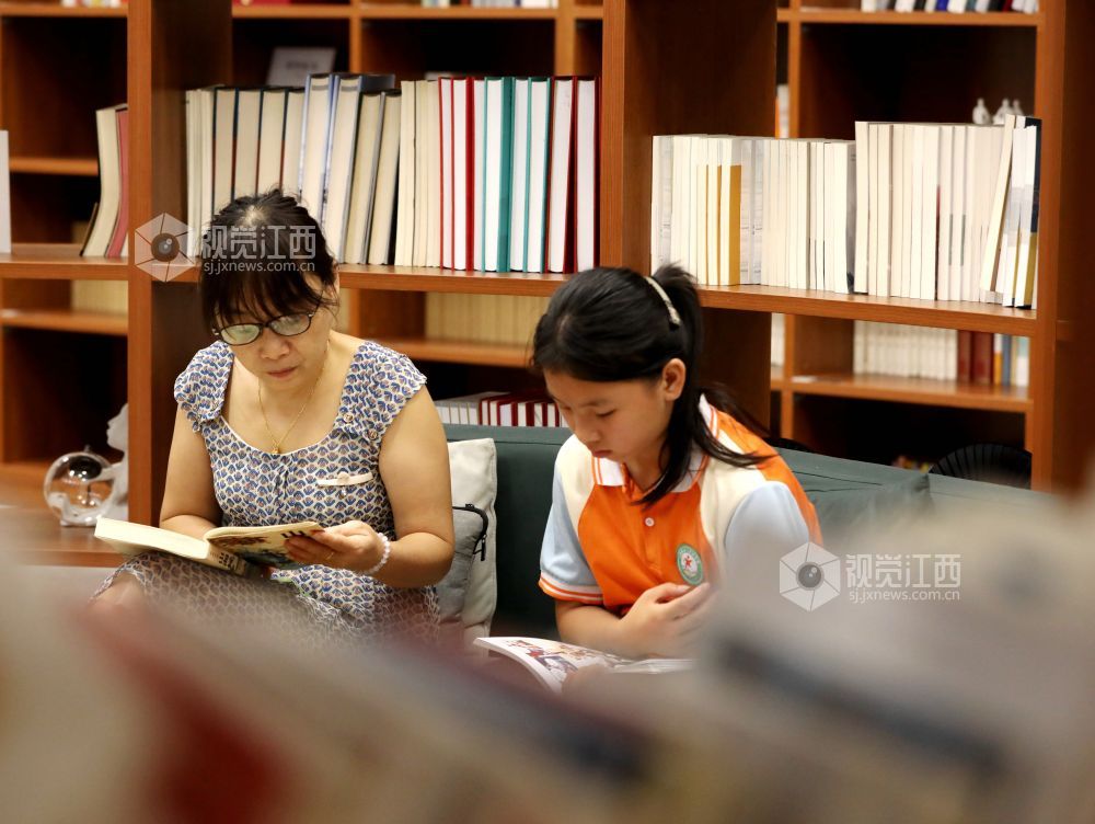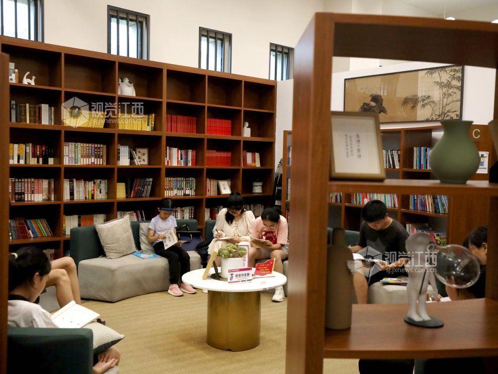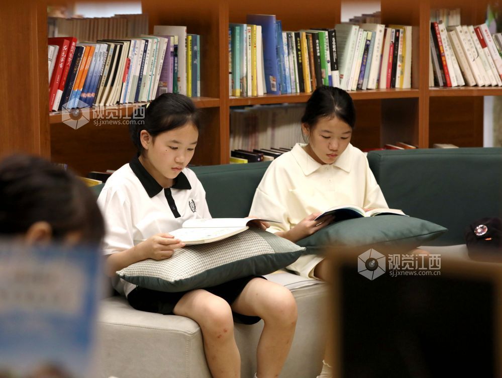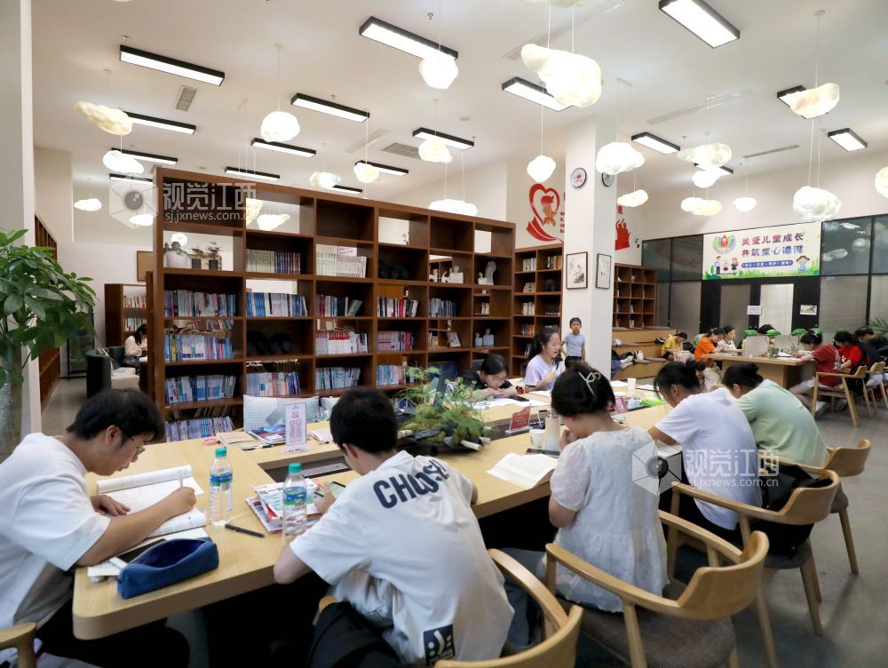 2024年7月28日,学生在江西省分宜县清芬书屋读书、学习。暑假期间,分宜县许多学生和市民走进城市书屋、新华书店、图书馆等场所,在凉爽舒适的环境中感受书香魅力,乐享假期生活。