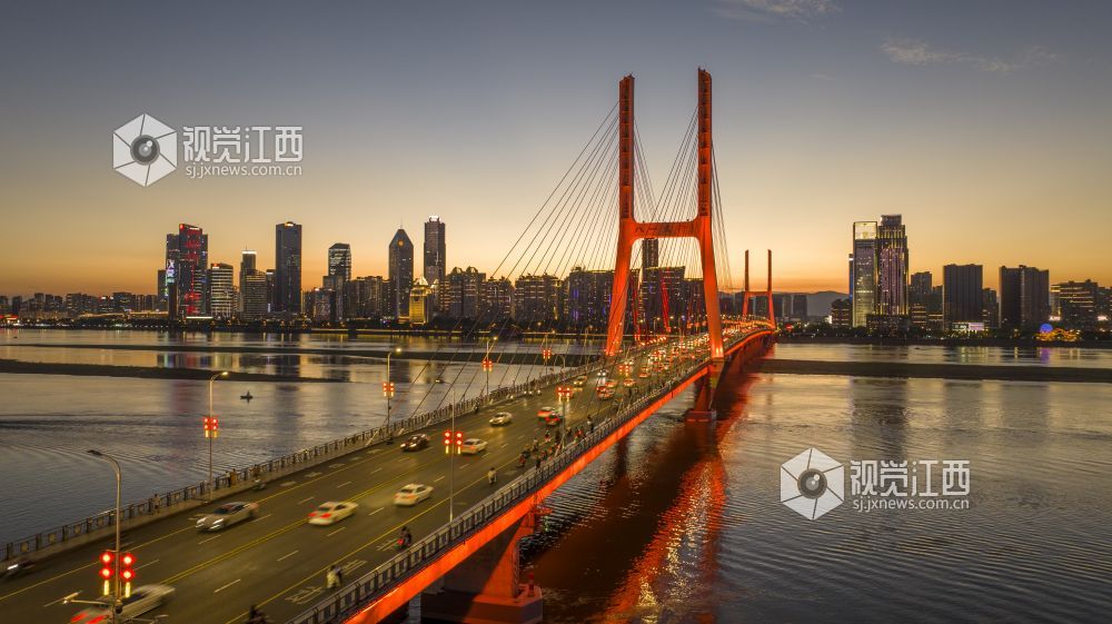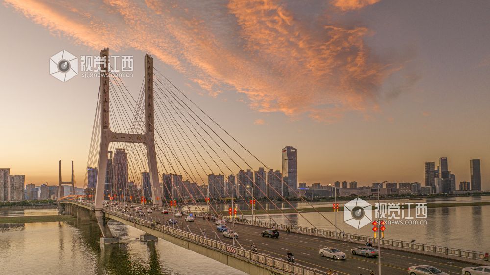 江西南昌:晚霞映照八一大桥