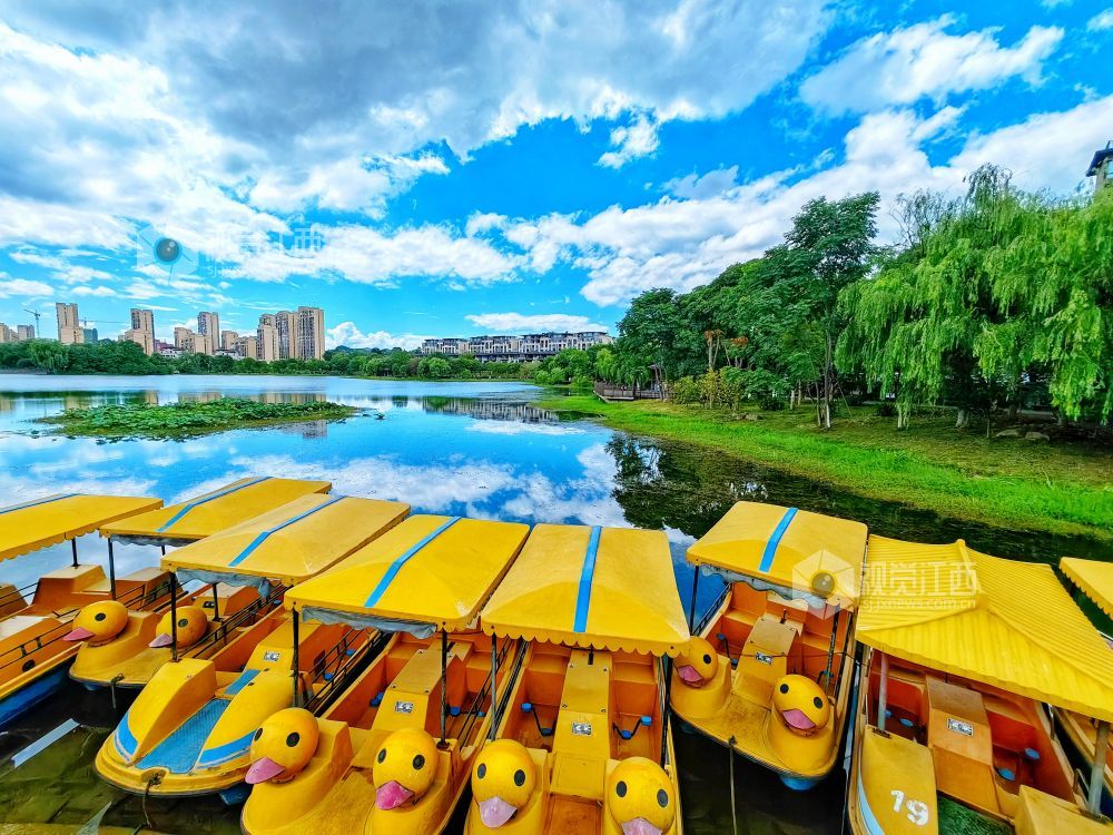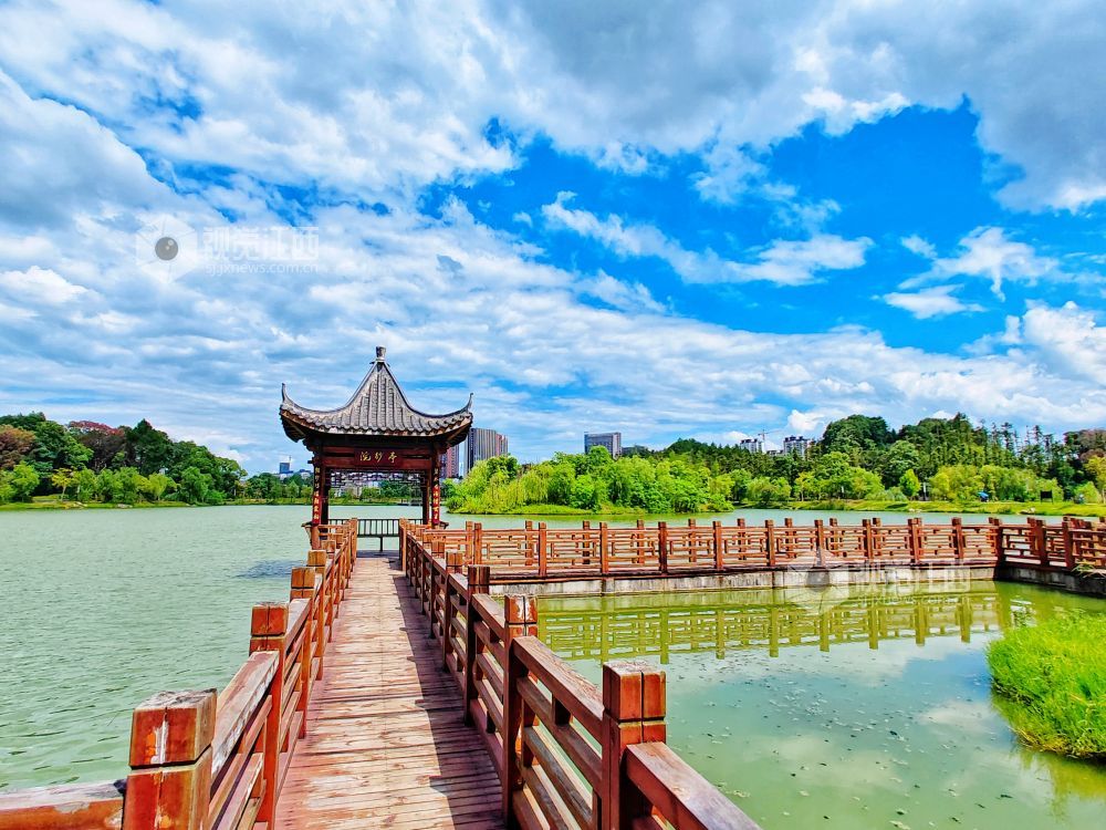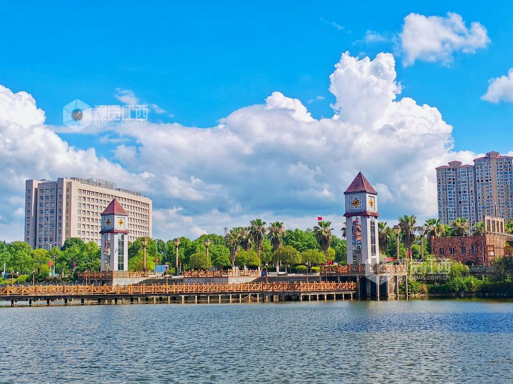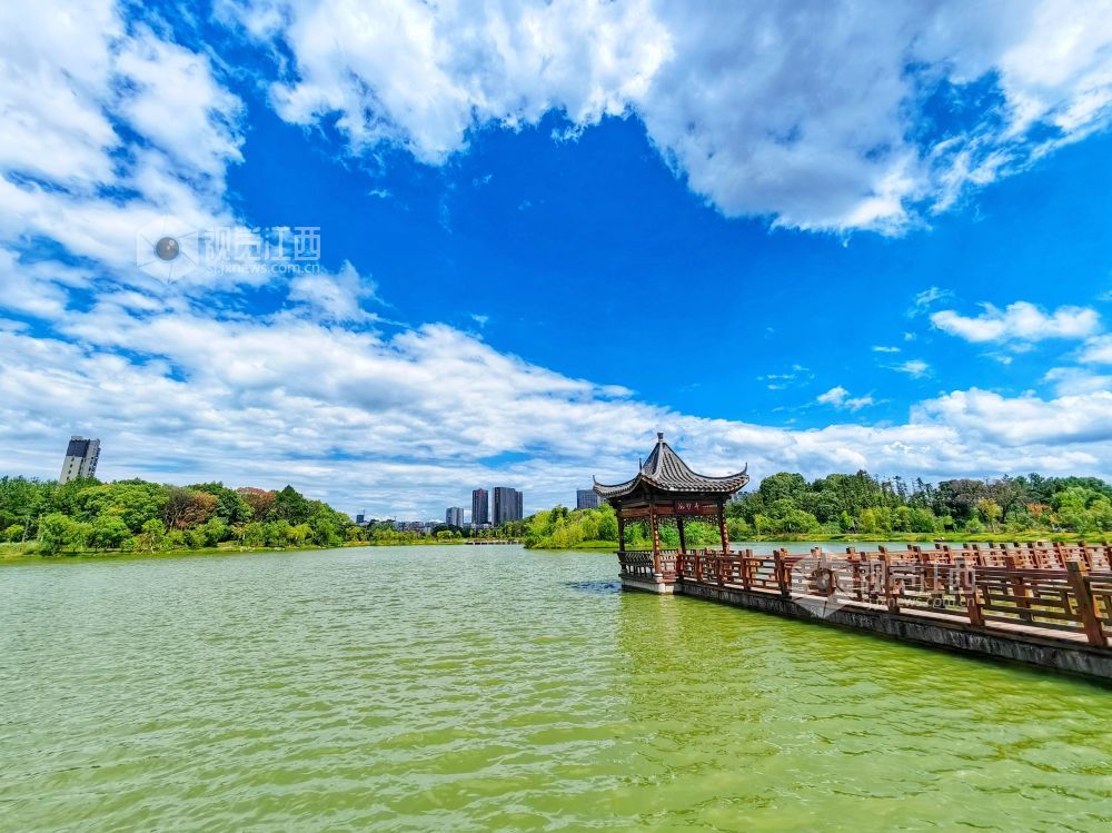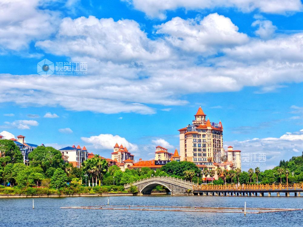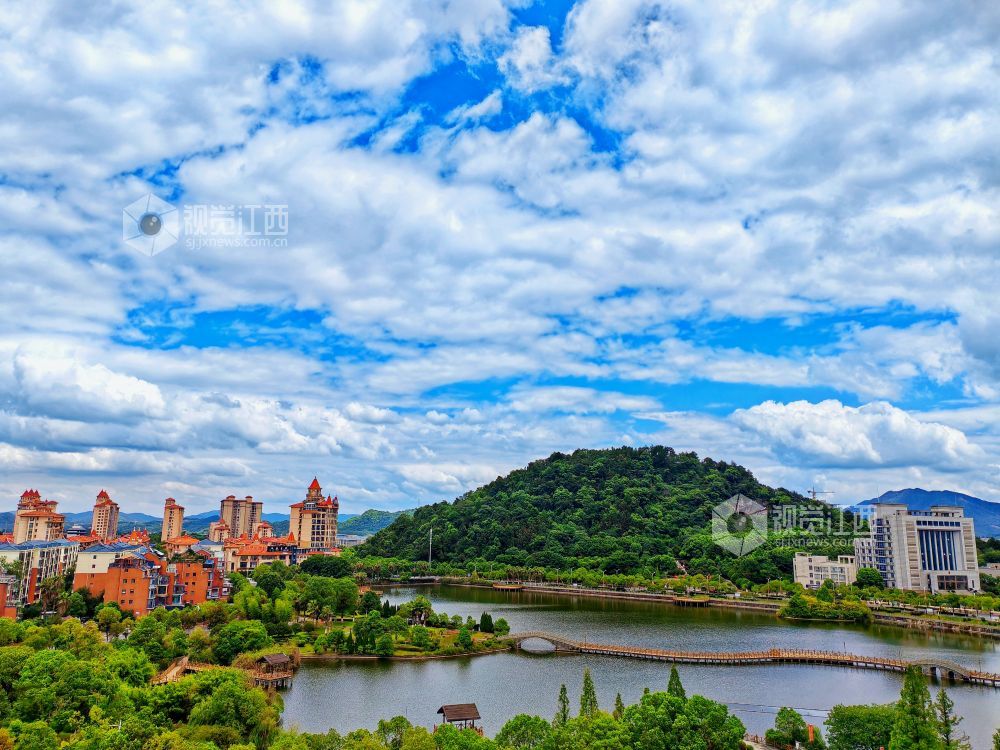 2024年7月29日,江西省分宜县晴空万里,天空澄澈,呈现蓝天白云“水晶天”的景象。城市的建筑物、绿地、河流与蓝天白云相映成趣,构成一幅美丽的画卷。