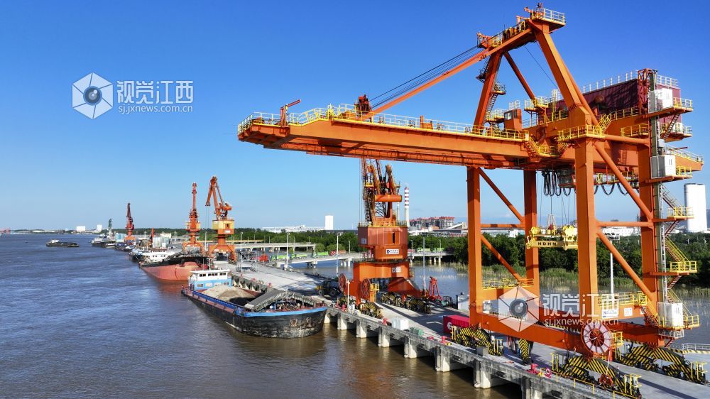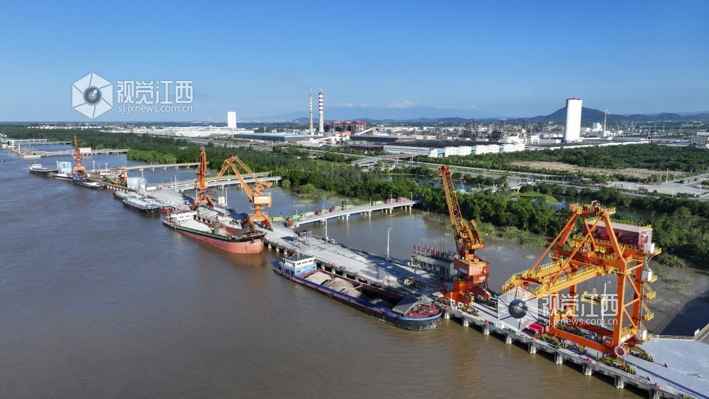 2024年7月29日,江西省九江港瑞昌港区公用码头,一派繁忙的装卸货物场景。九江港瑞昌港区公用码头优化工作流程,开足马力,全力生产,在保障安全的前提下抓紧时间装卸货物,确保辖区企业原料运得进来,产品运得出去。