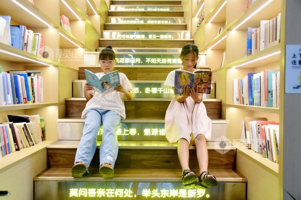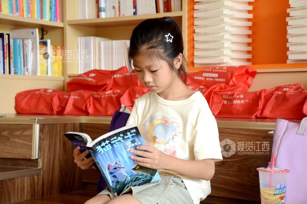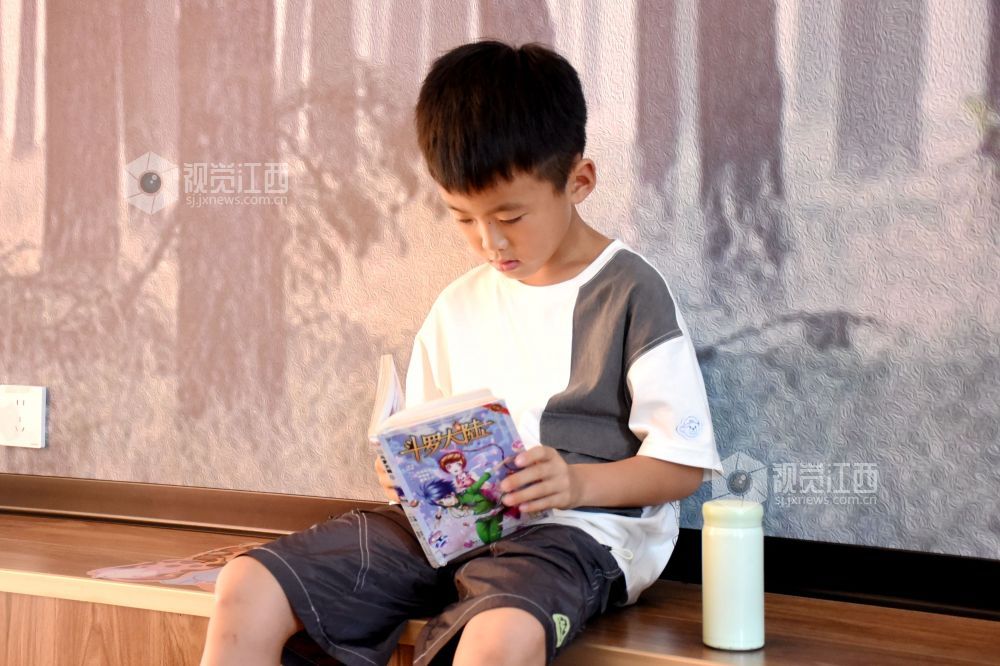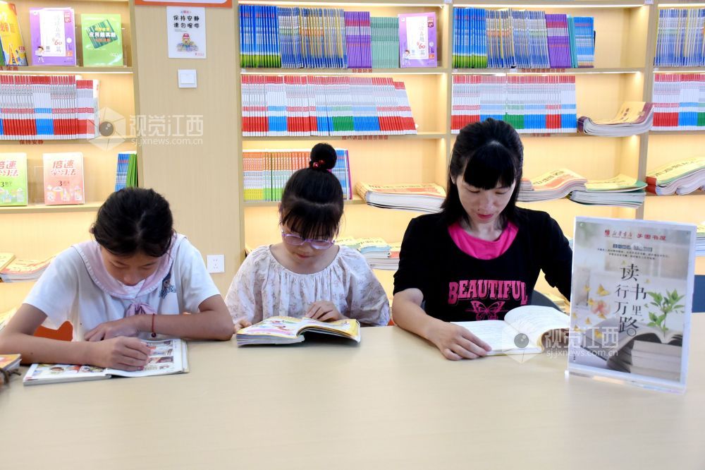 2024年7月31日,江西省抚州市南丰县新华书店里,学生在家长陪伴下阅读、学习。暑假期间,南丰县许多学生和市民走进新华书店、城市书屋、图书馆等场所,在凉爽舒适的环境中感受书香魅力,享受快乐假期生活。