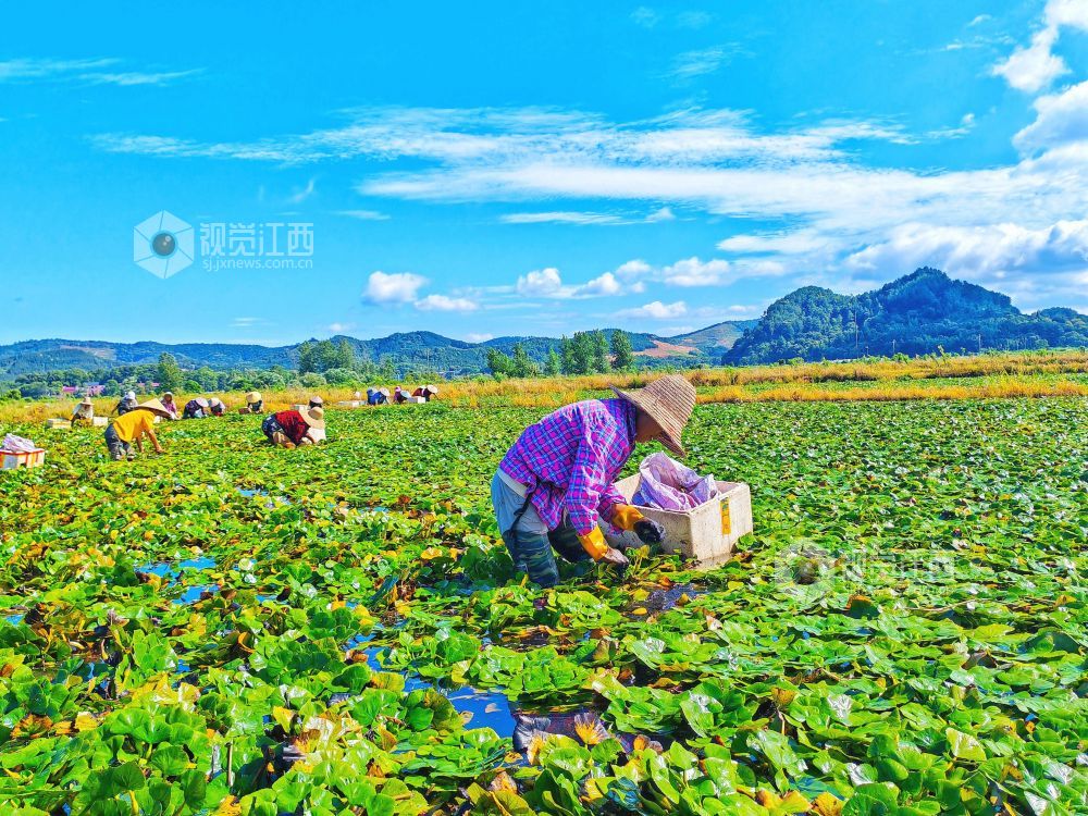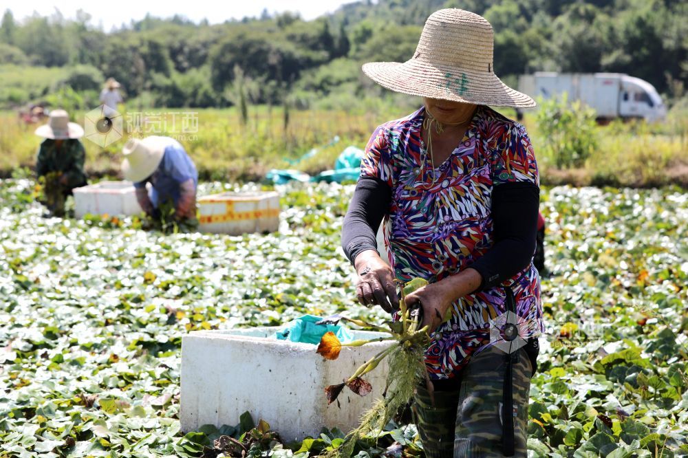 2024年7月31日,江西省分宜县凤阳镇沔村村菱角种植基地,1000亩菱角陆续进入采摘期,村民在菱塘忙碌采摘菱角供应市场。近年来,分宜县依托当地水资源生态优势,采取“公司+合作社+农户”模式,大力发展菱角种植,助力农民增收致富。