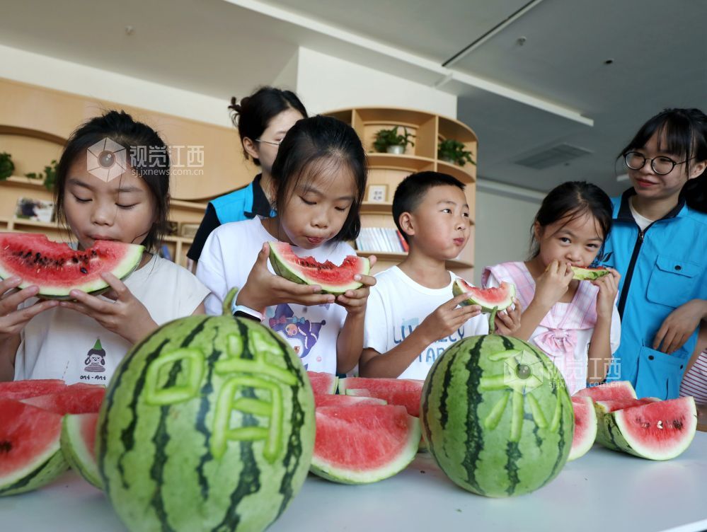 立秋节气将至,8月5日,江西省共青团分宜县委和分宜县静益团组织暑托班的小朋友们开展“啃秋”吃西瓜比赛,体验传统文化。我国民间有“立秋啃秋”习俗,即在立秋这一天吃西瓜,表达“啃下酷暑、喜迎秋爽”的愿望。
