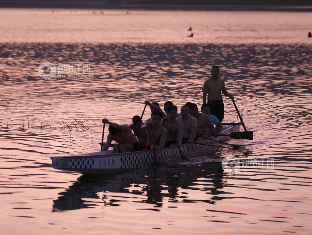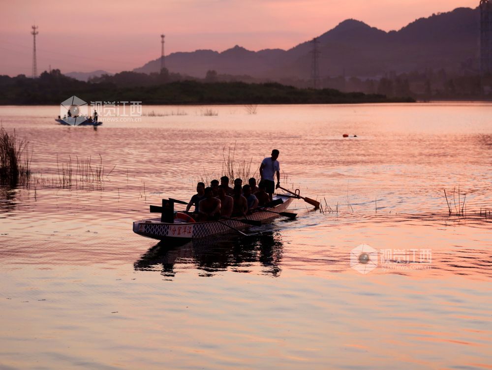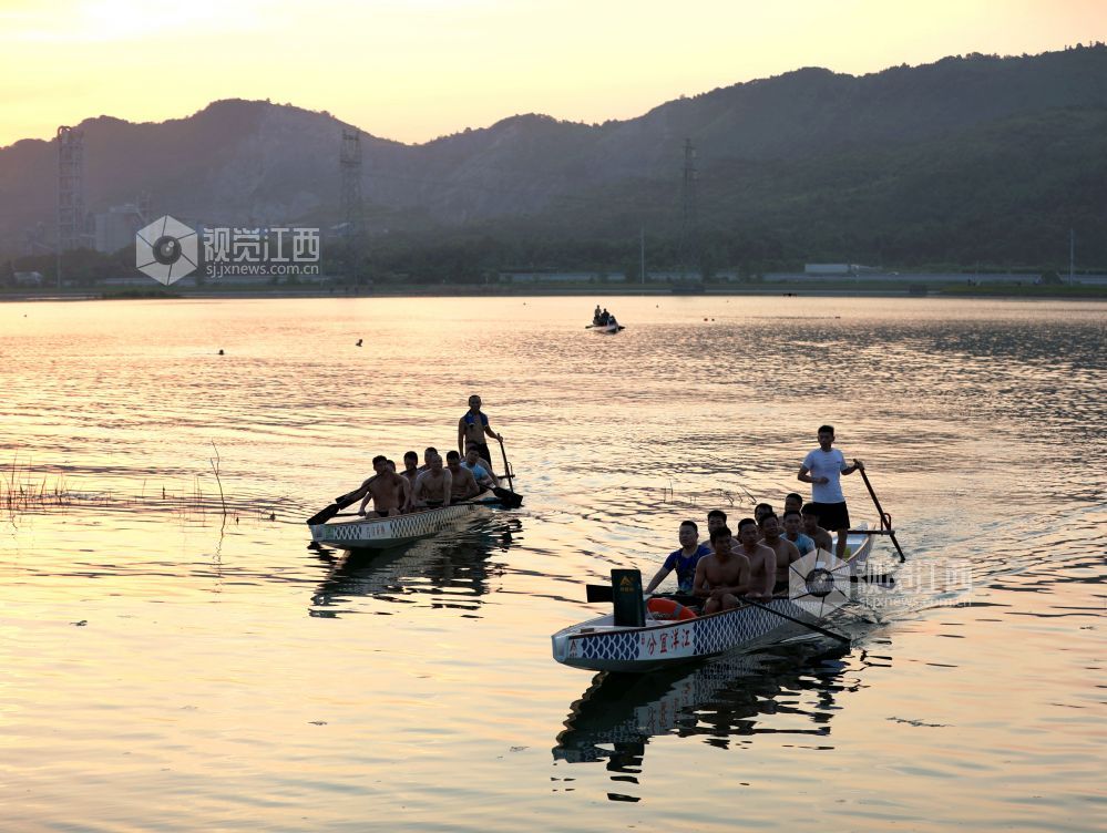 2024年8月8日,江西省分宜县龙舟协会组织会员在县城美满水库进行划龙舟训练,迎接全国第16个全民健身日的到来。在落日余晖的映照下,龙舟在水面上来回划动,与晚霞交相辉映,构成一幅幅美丽的图画。此次活动,通过传统体育项目,进一步推广全民健身理念,激发了市民的健身热情,推动了全民健身事业的发展。