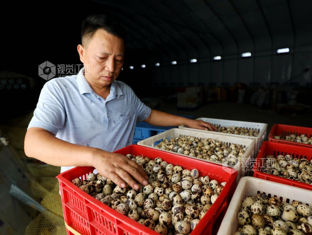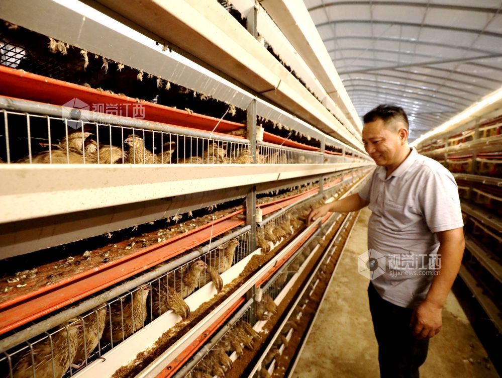 2024年8月10日,在江西省分宜县凤阳镇大路边村的鹌鹑养殖场内,养殖户正在查看鹌鹑的投食状况。近年来,凤阳镇大力发展特色养殖,通过规模化、产业化养殖,使小小鹌鹑变成了村民的“致富鸟”,为乡村振兴注入新动能。