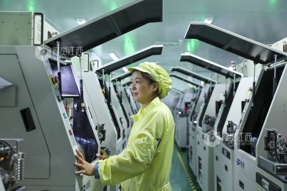 2024年8月13日,江西省瑞昌经开区科技园江西瑞晟科技有限公司生产车间内,工人们正在智能生产线上赶制订单。