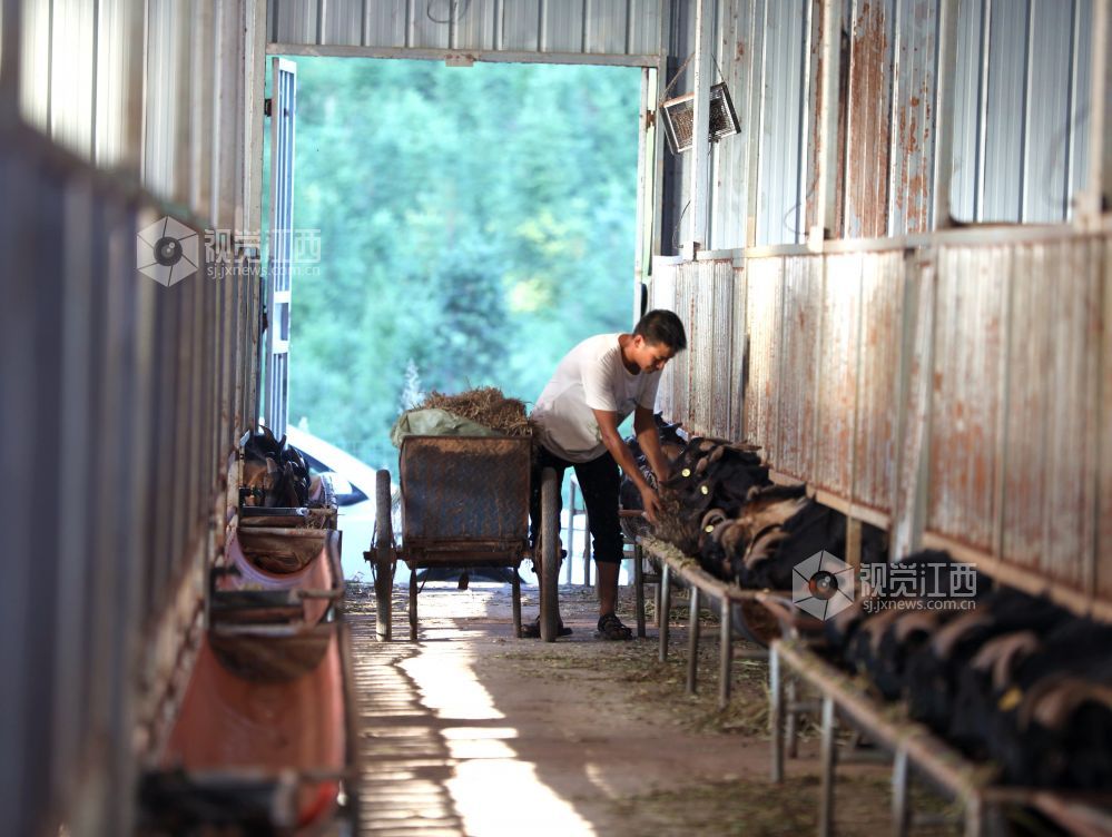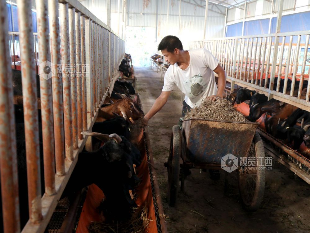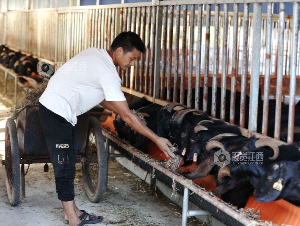2024年8月12日,江西省分宜县杨桥镇西田村山羊养殖基地,养殖户在给黑山羊投喂食料。该基地通过引进优质种羊,自己进行繁育,目前存栏300余只,吸纳当地村民在家门口就业。近年来,当地政府大力挖掘和培养致富带头人,发展山羊、龙虾、锦鲤等特色养殖产业,不断激活乡村产业发展动能,带动村民增收致富。