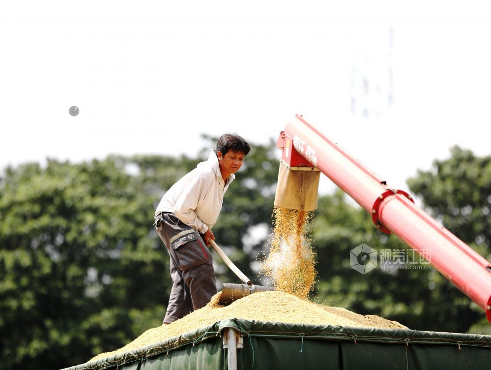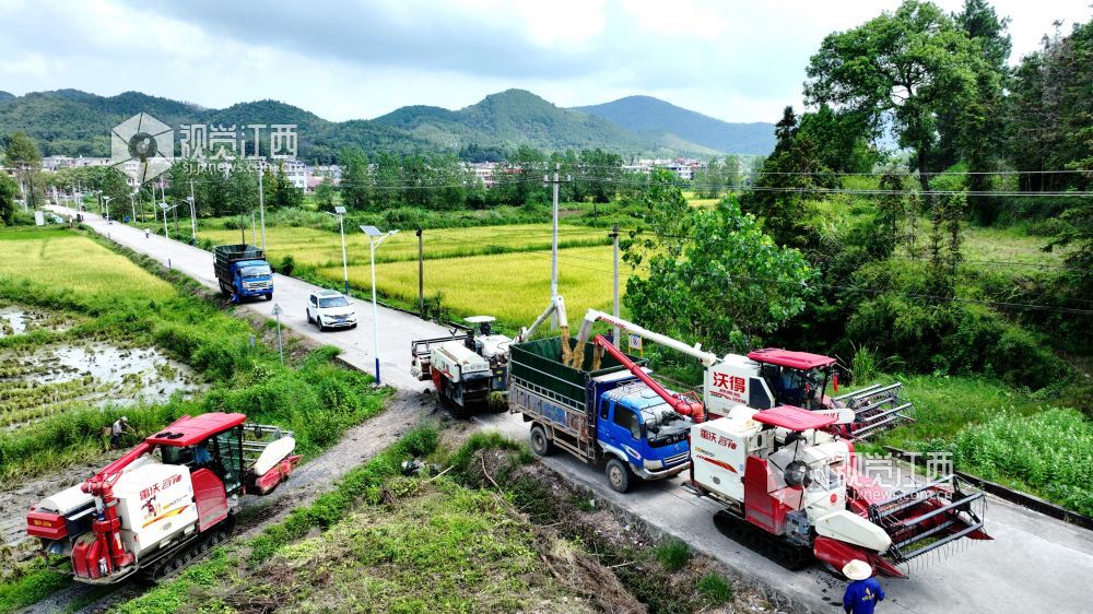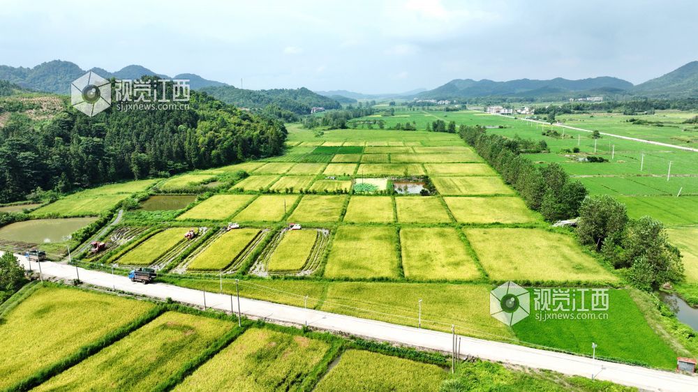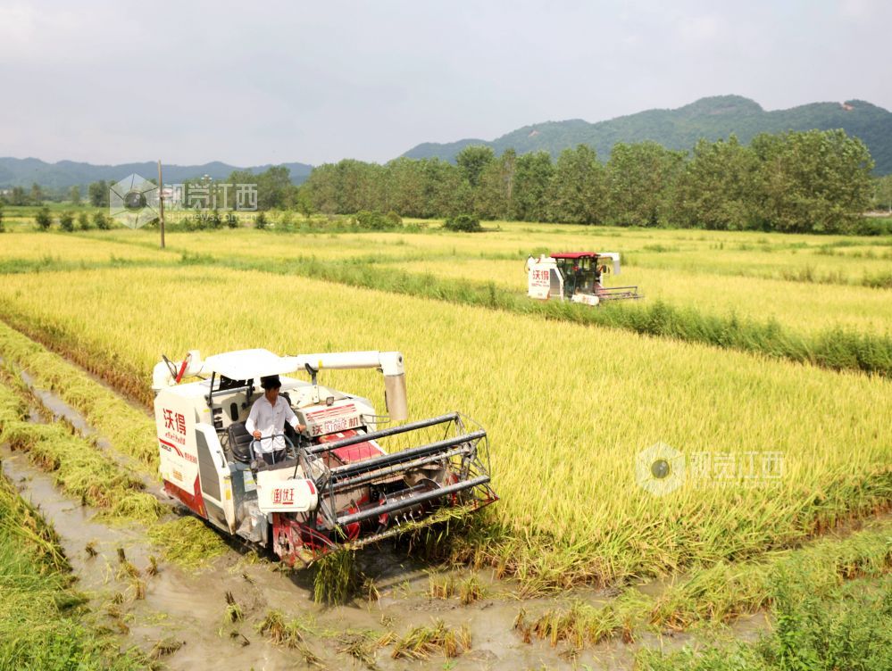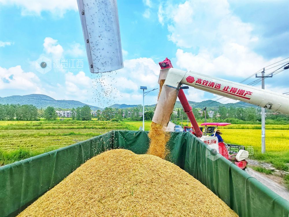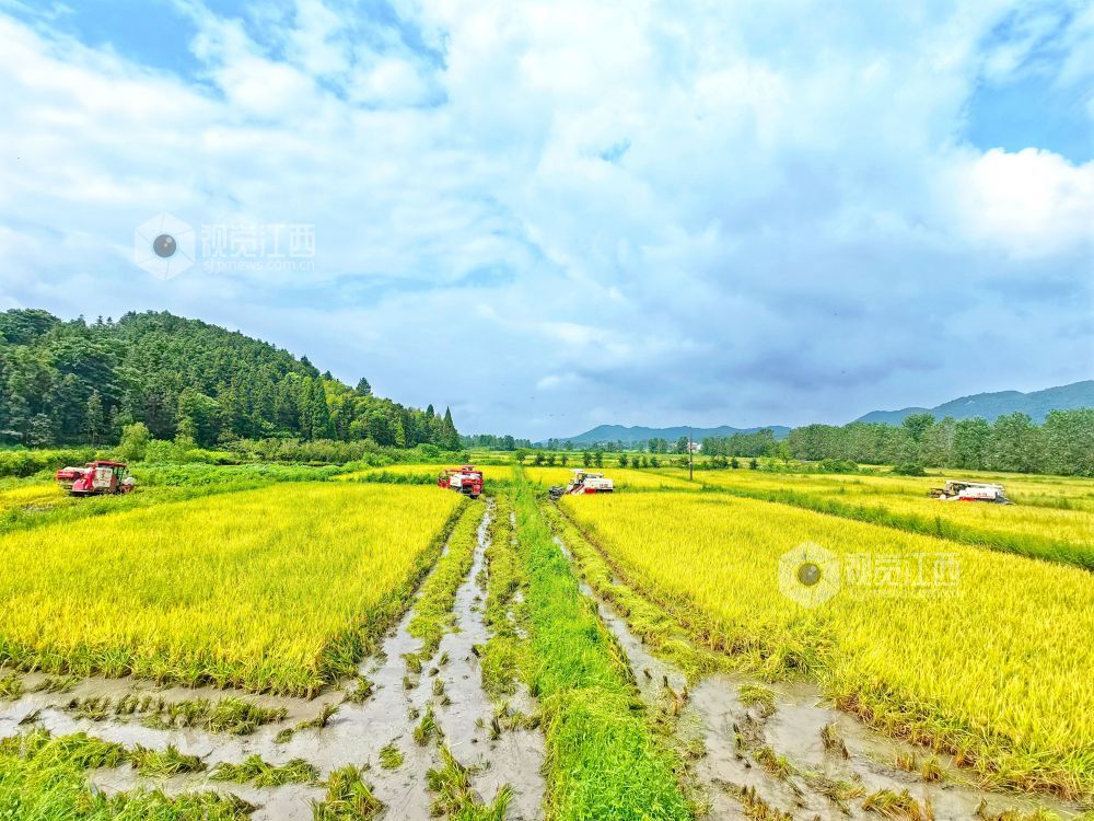 2024年8月15日,江西省分宜县高岚乡下塘村,农机手正在收割再生稻,田间地头一派繁忙。近年来,分宜县着力优化粮食生产结构布局,积极推广再生稻种植,同时在稻田里放养螺蛳,实现“一田三收”,助力粮食增产、农民增收。