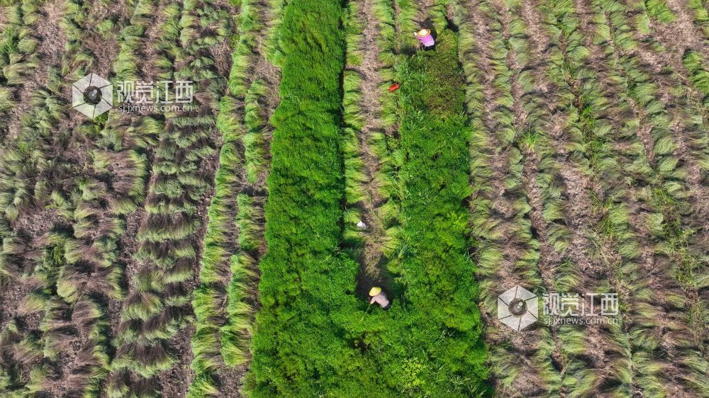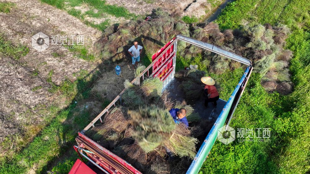 2024年8月21日,江西省宜春市万载县马步乡宝石村,村民在采收中草药材香薷。近年,江西省宜春市万载县采取间作套种、林下种植等模式,引导村民因地制宜大力发展迷迭香、百合、夏天无、香薷、艾草等中草药种植,推进了农业产业化、特色化发展,促进农民增收。
