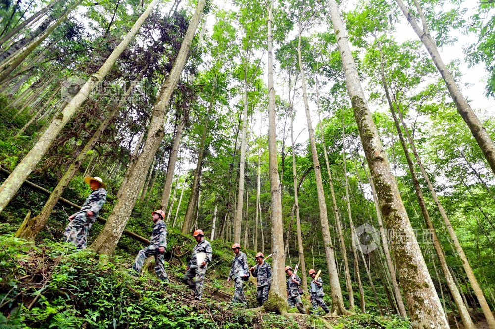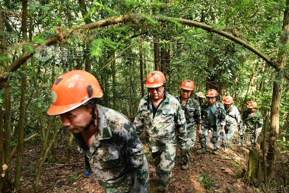 2024年8月22日,江西省宜春市万载县九龙原始森林公园里,护林员在林间巡护山林。江西省宜春市万载县九龙原始森林公园里的7名生态护林员,他们常年活跃在2.69万亩的大山深处,加强森林巡护、宣传、劝导,清理树木间垃圾、枯树枝叶、挖排水沟等,为青山绿水提供了管护力量。