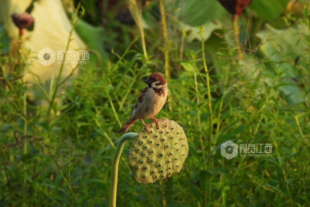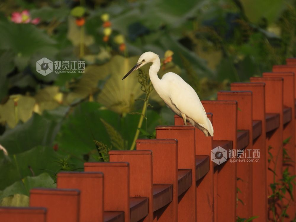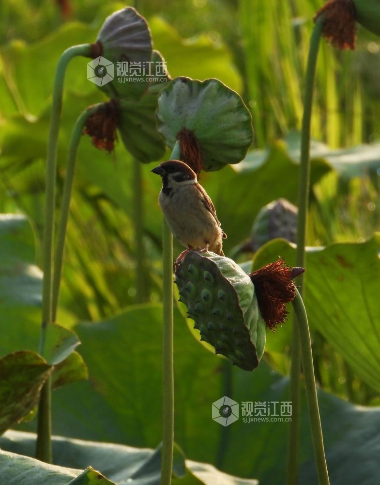 8月30日,在江西省莲花县琴亭镇莲花村荷花博览园,蜻蜓、麻雀、白鹭等小动物在这里栖息、觅食,给秋天的荷园带来了无限的生机和活力。