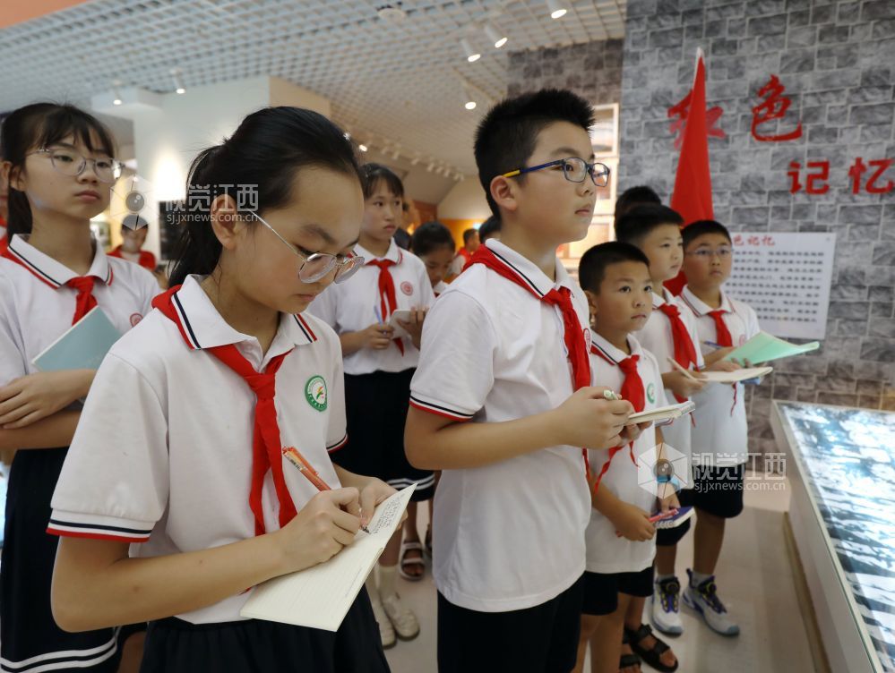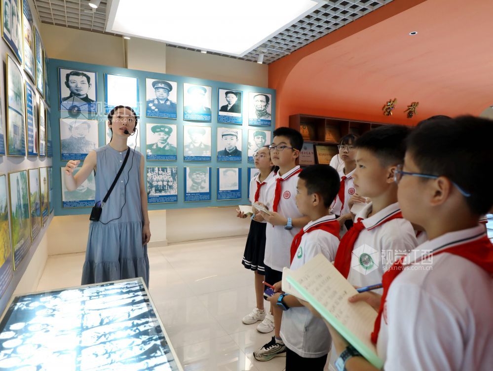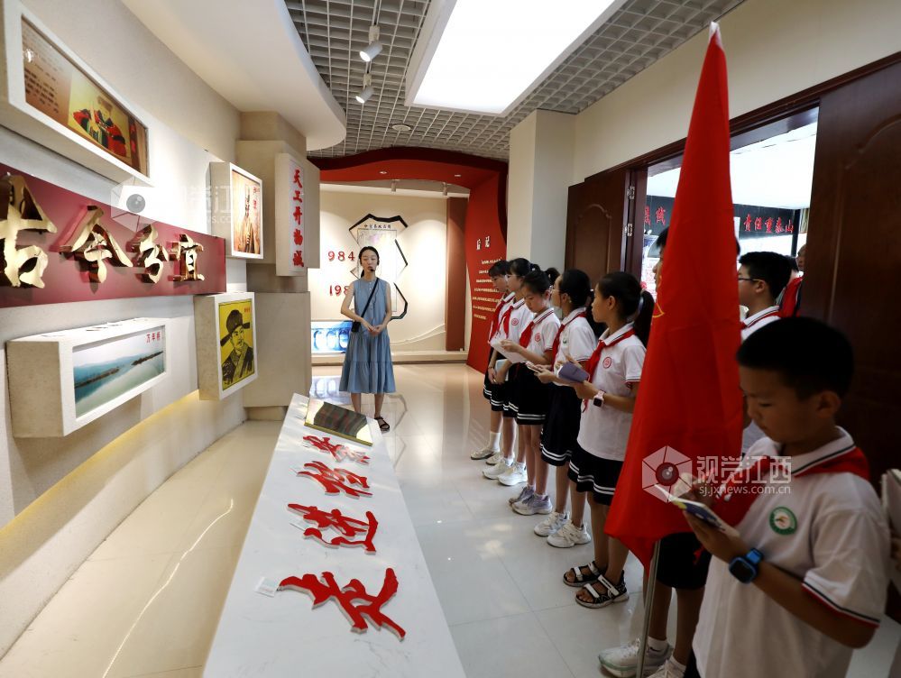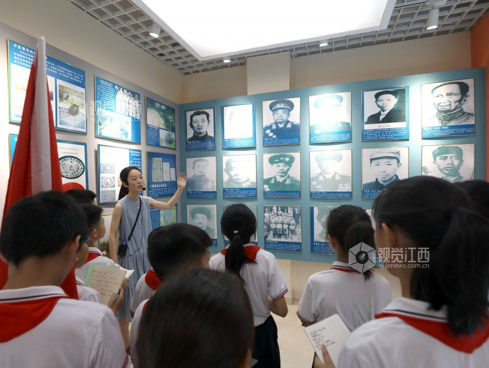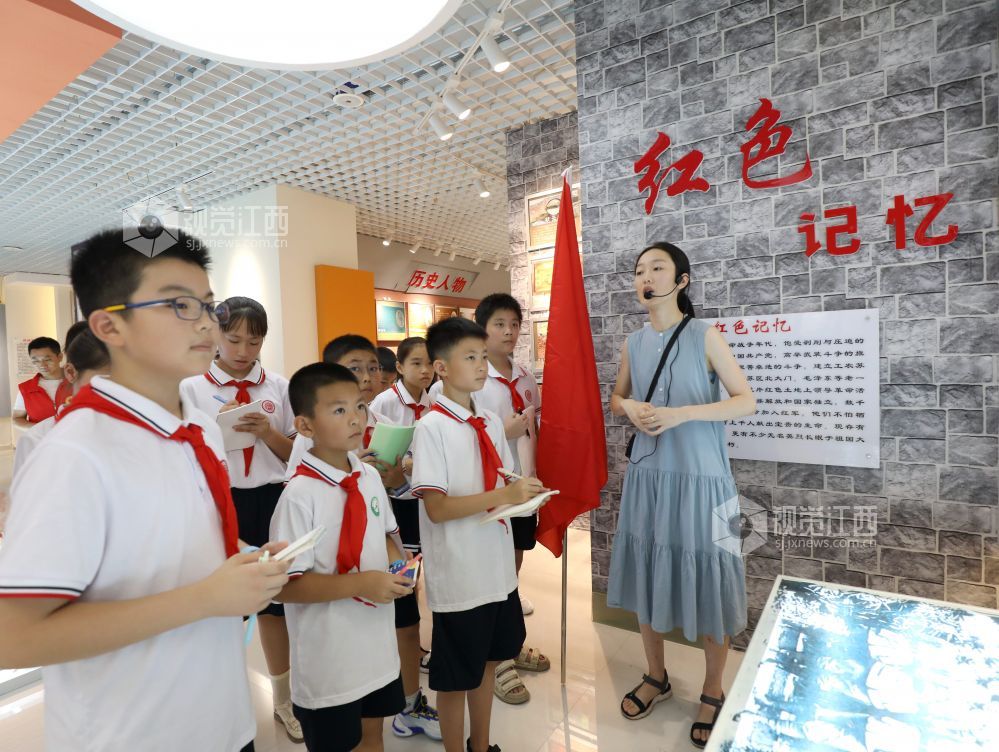2024年8月30日,档案馆讲解员正在给学生讲述地方红色故事。当日,江西省分宜县退役军人事务局、分宜县人武部联合分宜县第四中心小学把开学第一课的课堂,搬进当地爱国主义教育基地分宜县档案馆,让学生沉浸式体验当地红色文化,厚植学生的家国情怀。