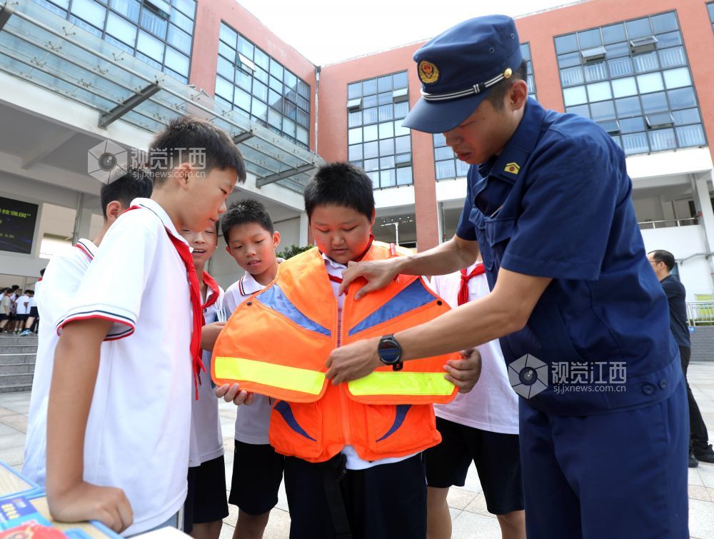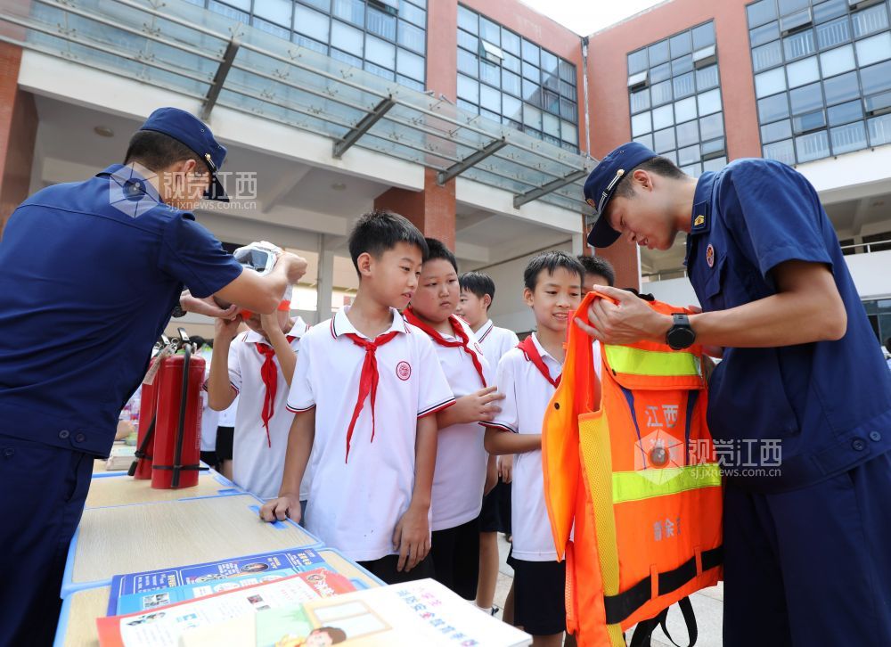 2024年9月11日,江西省分宜县消防救援大队走进分宜四小开展消防安全知识进校园活动,筑牢校园安全防火墙。活动中,消防救援员现场教学、示范操作,手把手教学生正确穿戴救生衣、防火面罩,使用灭火器等消防设施器材,增强学生的消防安全意识和逃生自救能力。