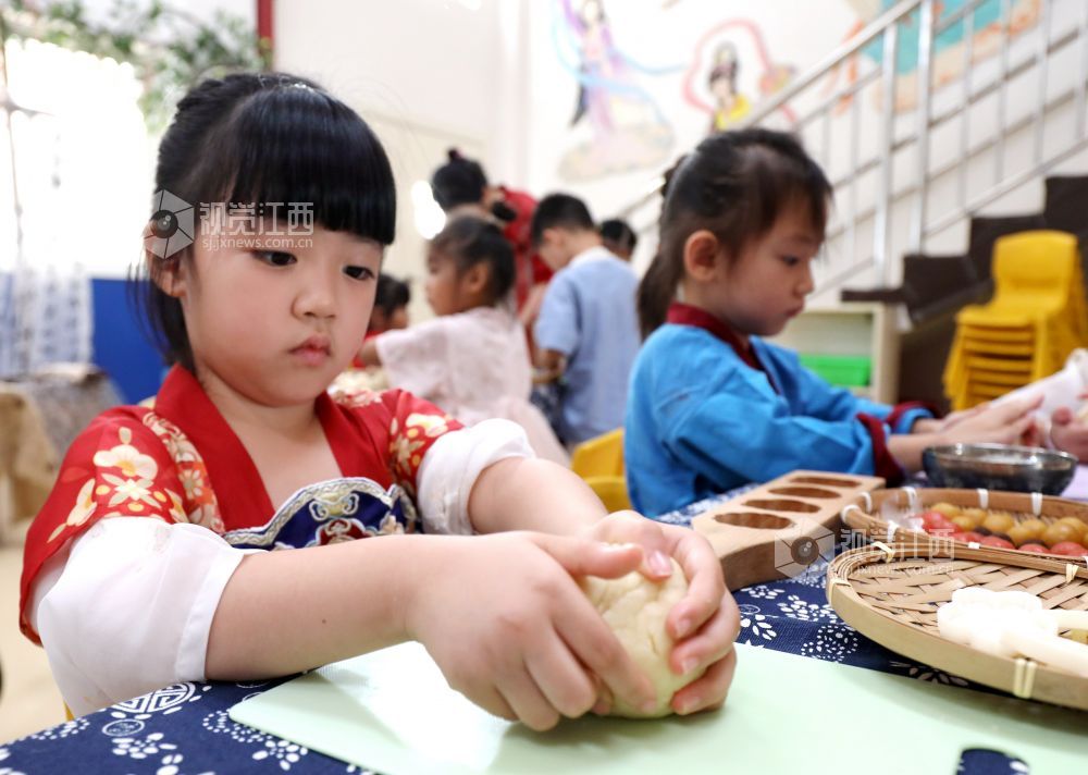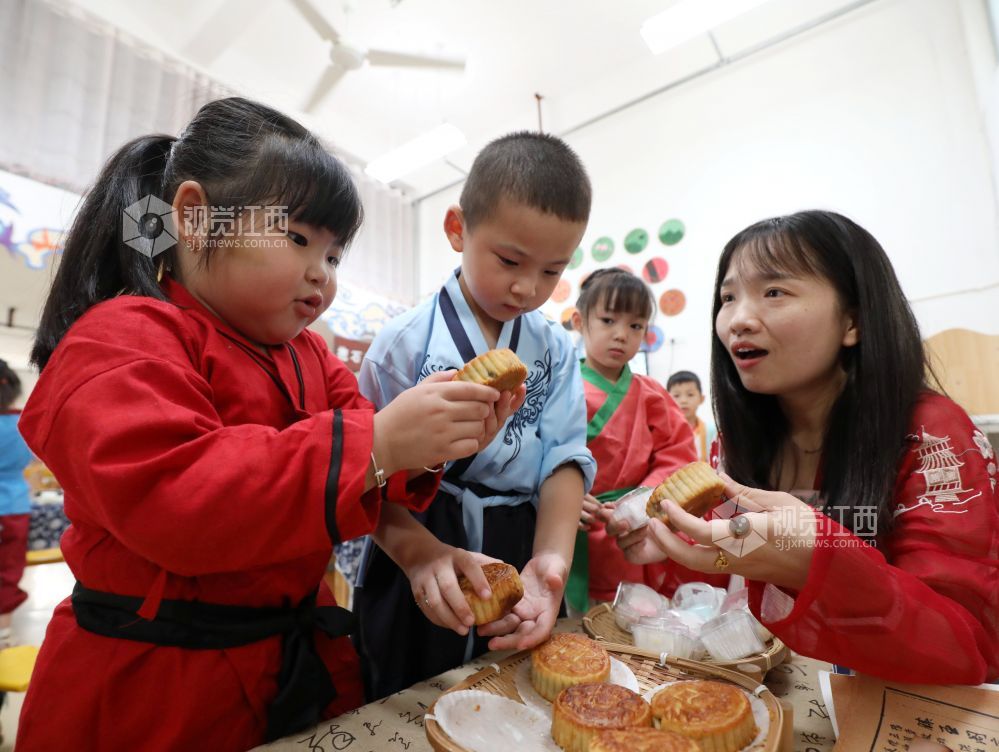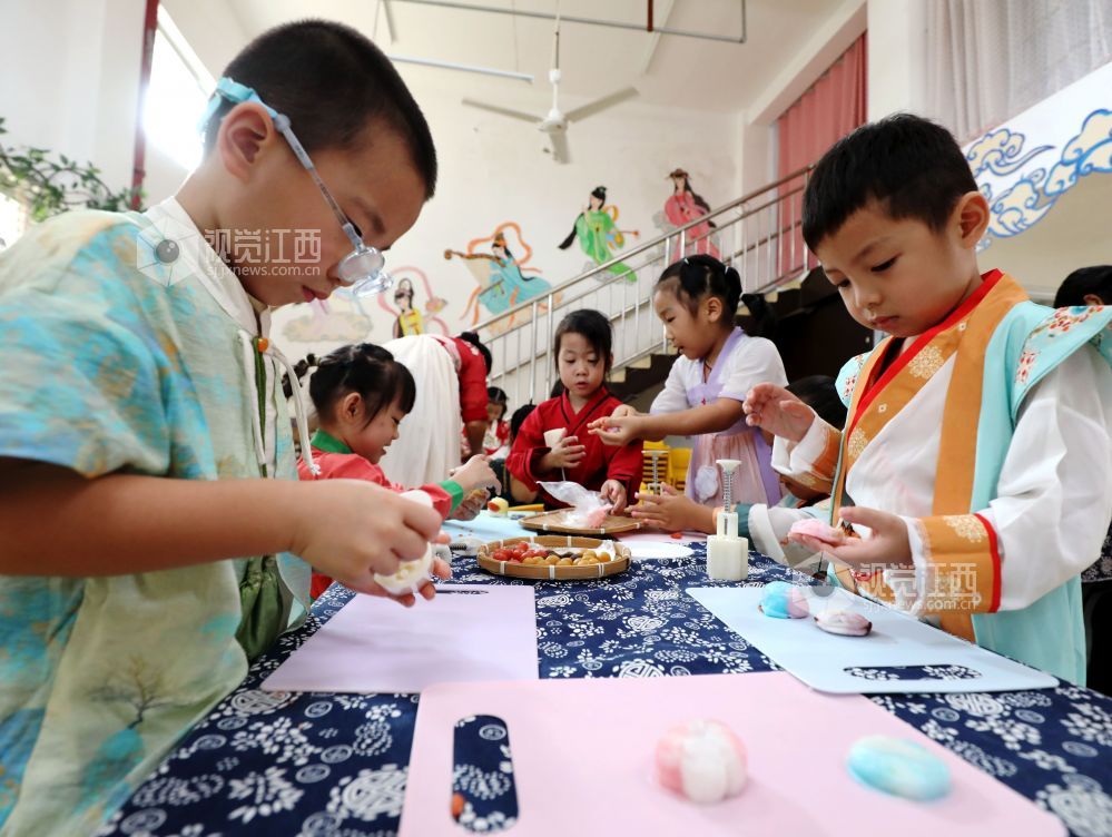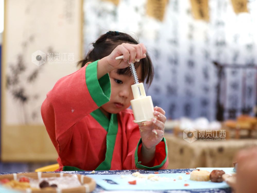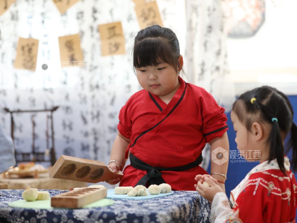 2024年9月12日,江西省新余市分宜县妇女儿童活动中心机关幼儿园开展“萌娃做月饼 喜迎中秋节”主题活动,孩子们在老师的指导下学习制作月饼,体验传统节日文化。