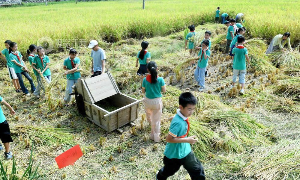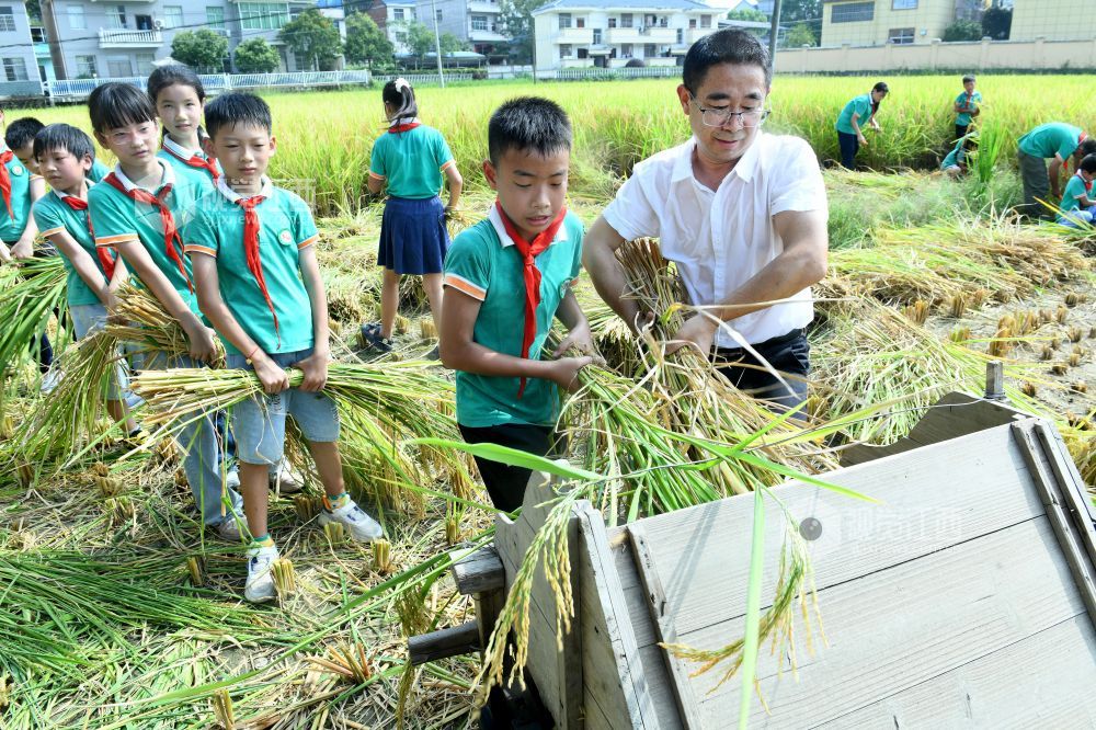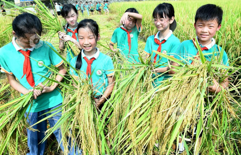 当天,江西省德兴市李宅中心小学组织开展了一次“体验劳动,乐享金秋”校园稻作文化活动,该校六年级的同学们在老师陪同下,来到校园劳动基地,收割之前亲自种植的水稻,现场体验农民丰收的喜悦。活动不仅丰富了教学内容,同时也培育他们劳动素养,让同学们在劳动中传承我国古老稻作文化美德。