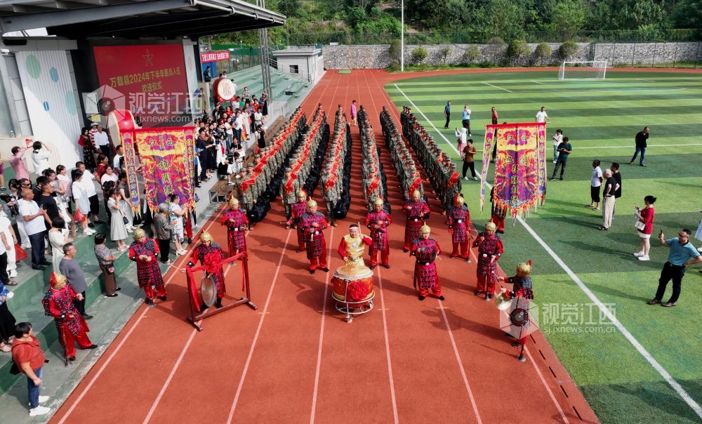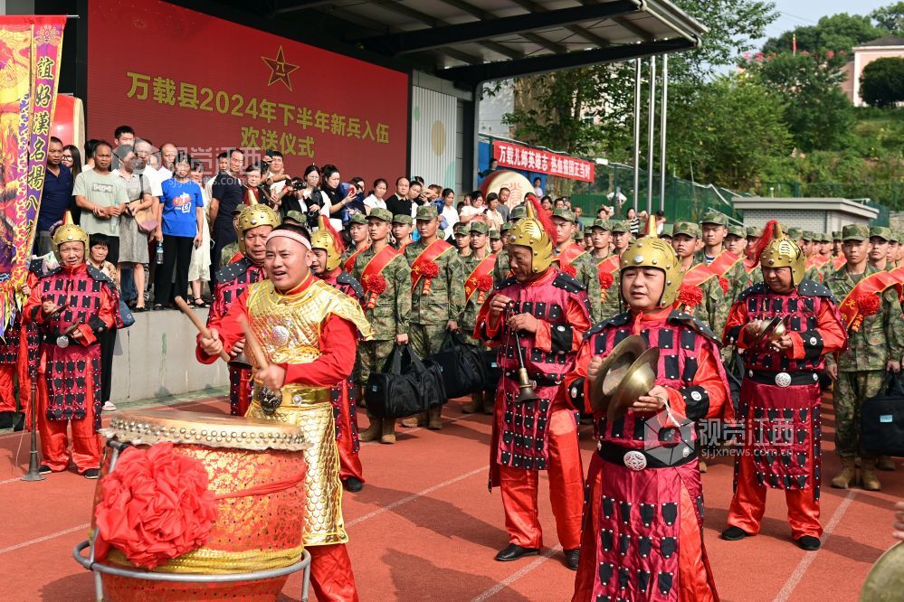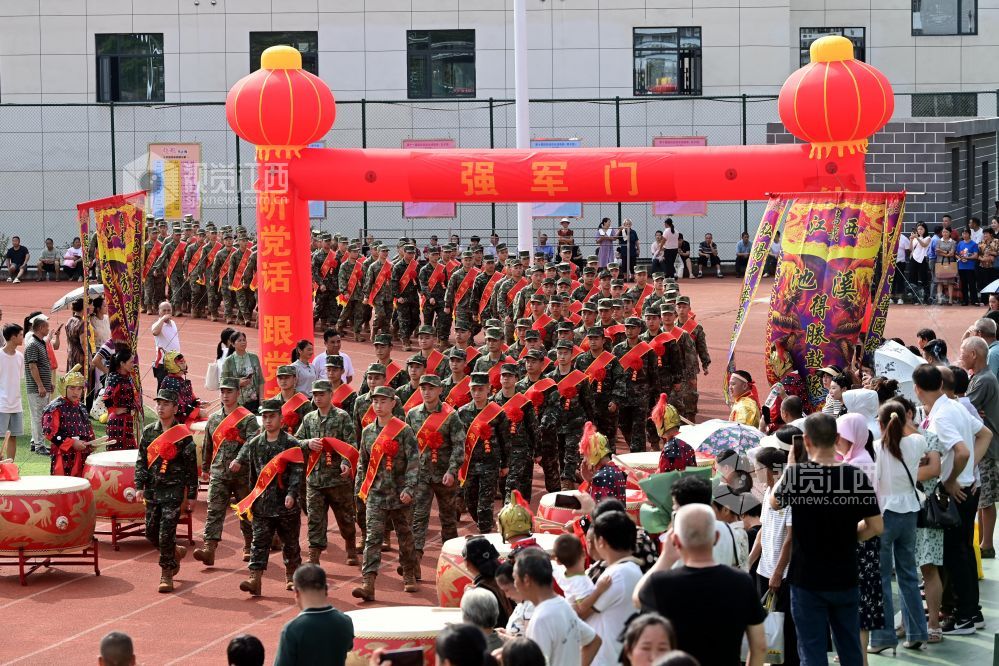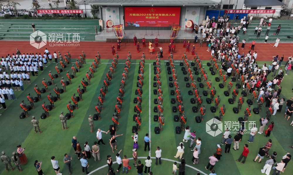 2024年9月14日,江西省宜春市万载县在第三中学操场举行2024年下半年新兵欢送仪式,为即将启程奔赴军营的新兵送行。当地群众和新兵亲友热烈欢送,新兵们身着戎装,佩戴红花和绶带,对即将到来的军旅生活充满憧憬与期待。