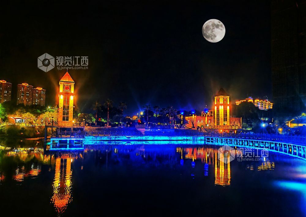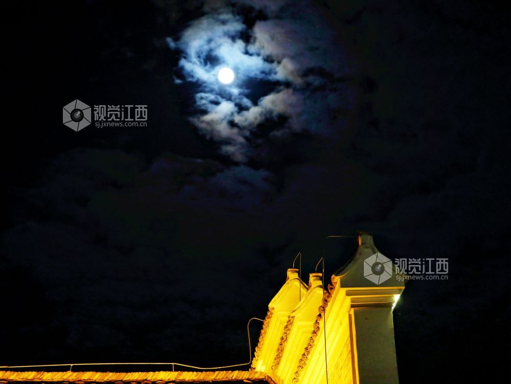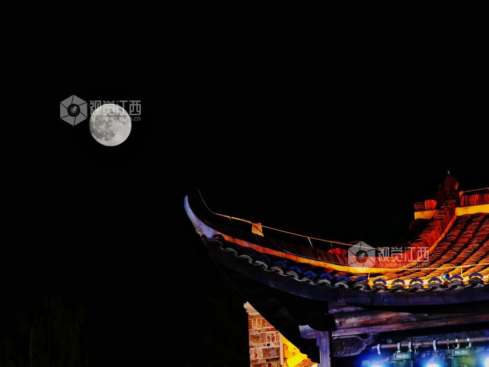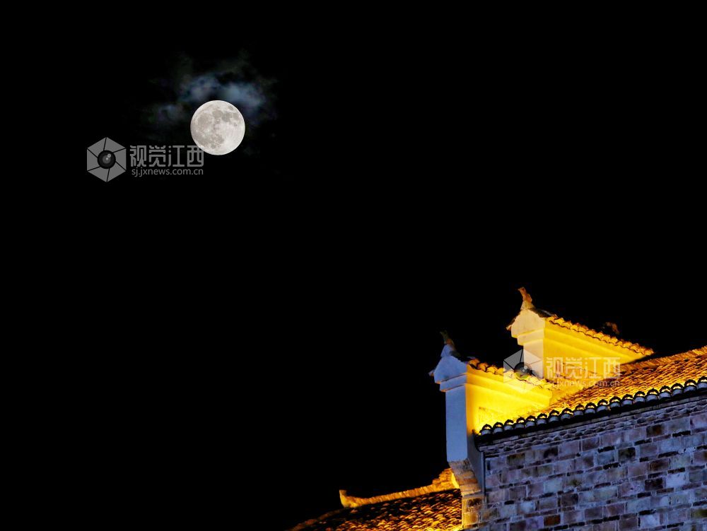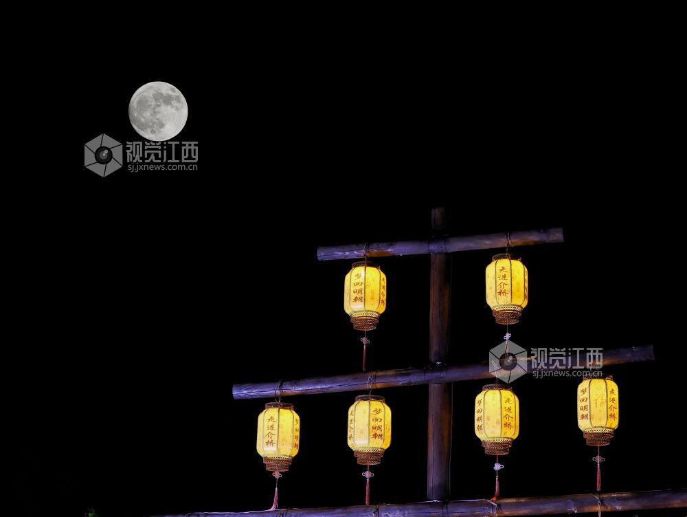 一年又中秋,月光照九州。2024年9月17日是中秋节,当晚,在江西省分宜县介桥古村景区和分宜东湖公园上空,中秋满月遇上了“超级月亮”。古村的老屋建筑及东湖公园的景观灯与“超级月亮”相互映衬,构成一道美丽的风景。