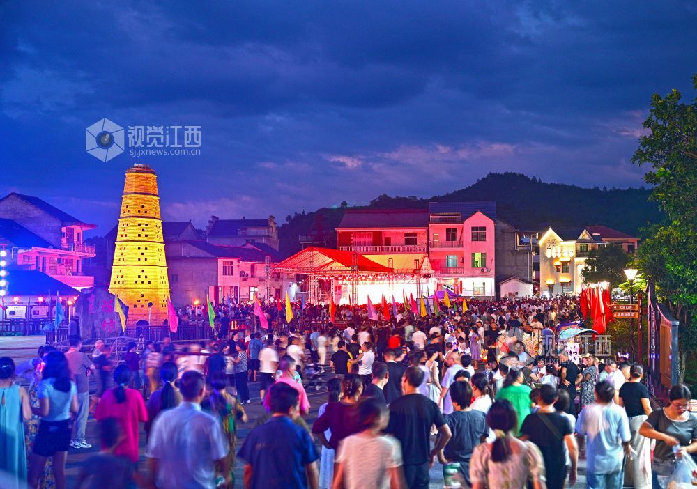 2024年9月17日晚,中秋佳节,在江西省上饶市铅山县陈坊乡油烧塔文明实践广场,烧塔祈福活动正在火热举行。烧塔祈福是村民每年中秋节的必备活动,祈盼祖国繁荣昌盛、百姓幸福安康。现场除了“烧塔”活动之外,还组织了拜月仪式、放河灯、篝火晚会等活动,供群众观赏、体验。