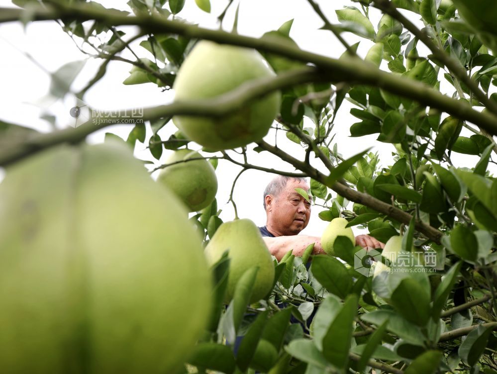 金秋时节,柚果飘香。2024年9月23日,江西省分宜县分宜镇横溪村金兰柚种植基地迎来丰收,果农在忙着采摘柚子。近年来,当地打造“一村一品”特色产业,采取“致富带头人+帮扶单位+村集体+农户”的经营模式,引导村民大力发展特色水果产业,带动农业增效、农民增收。